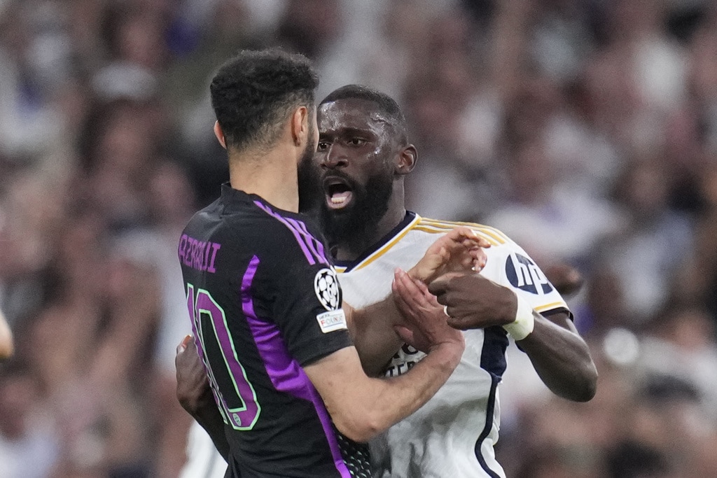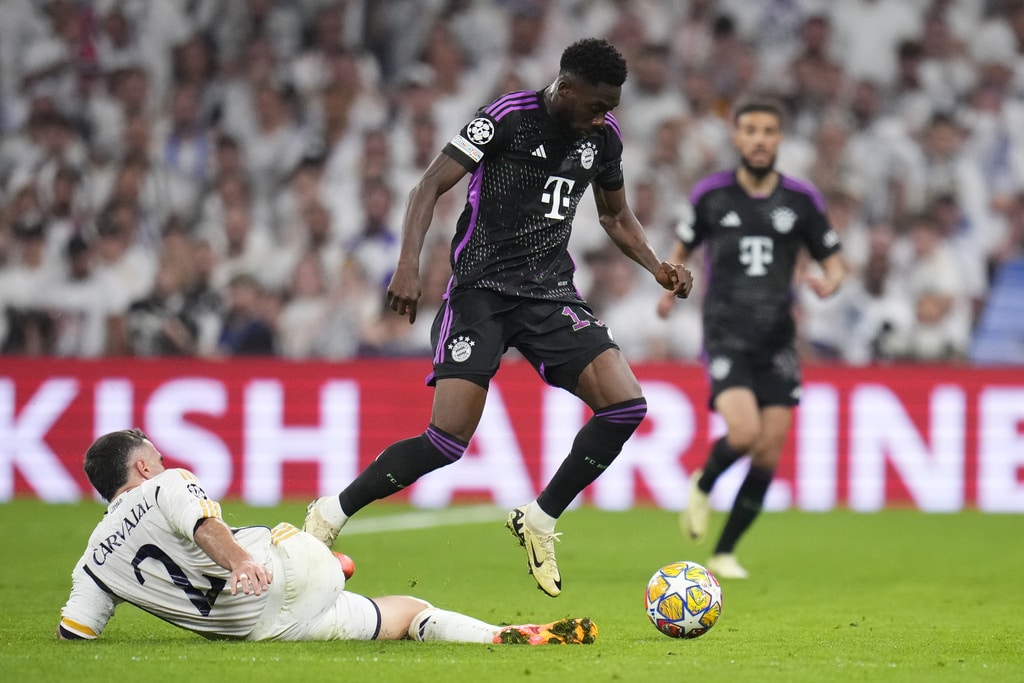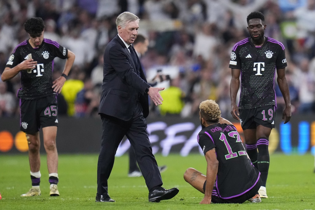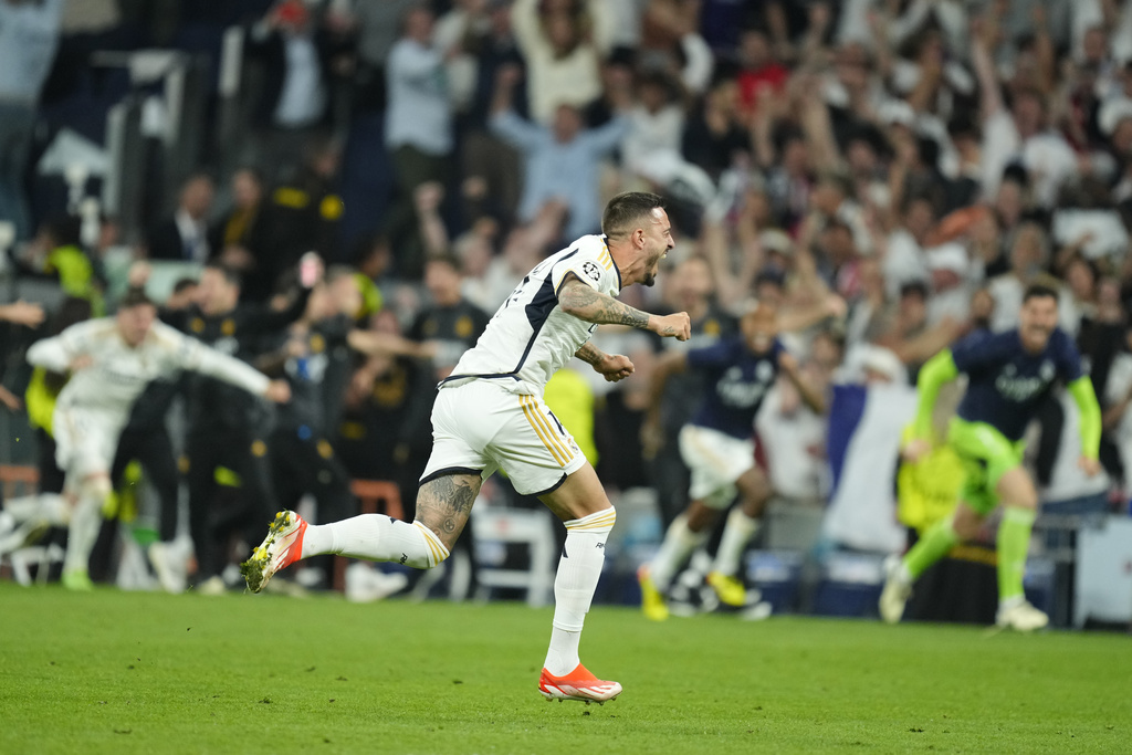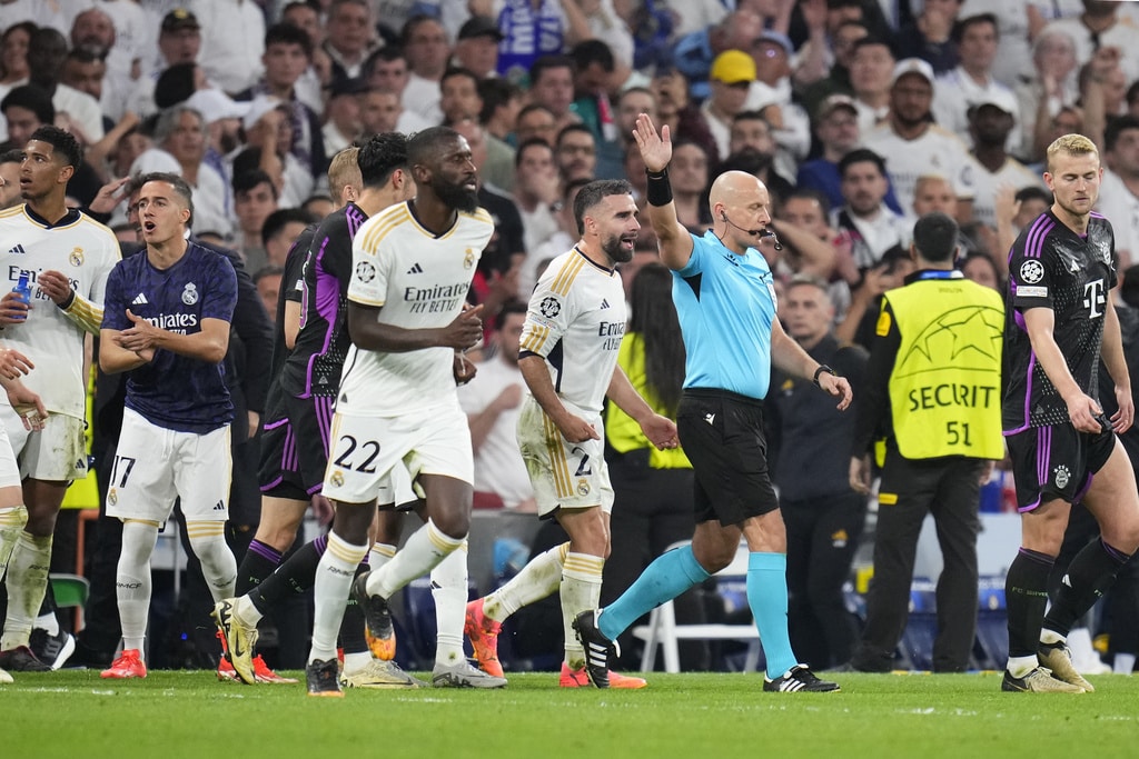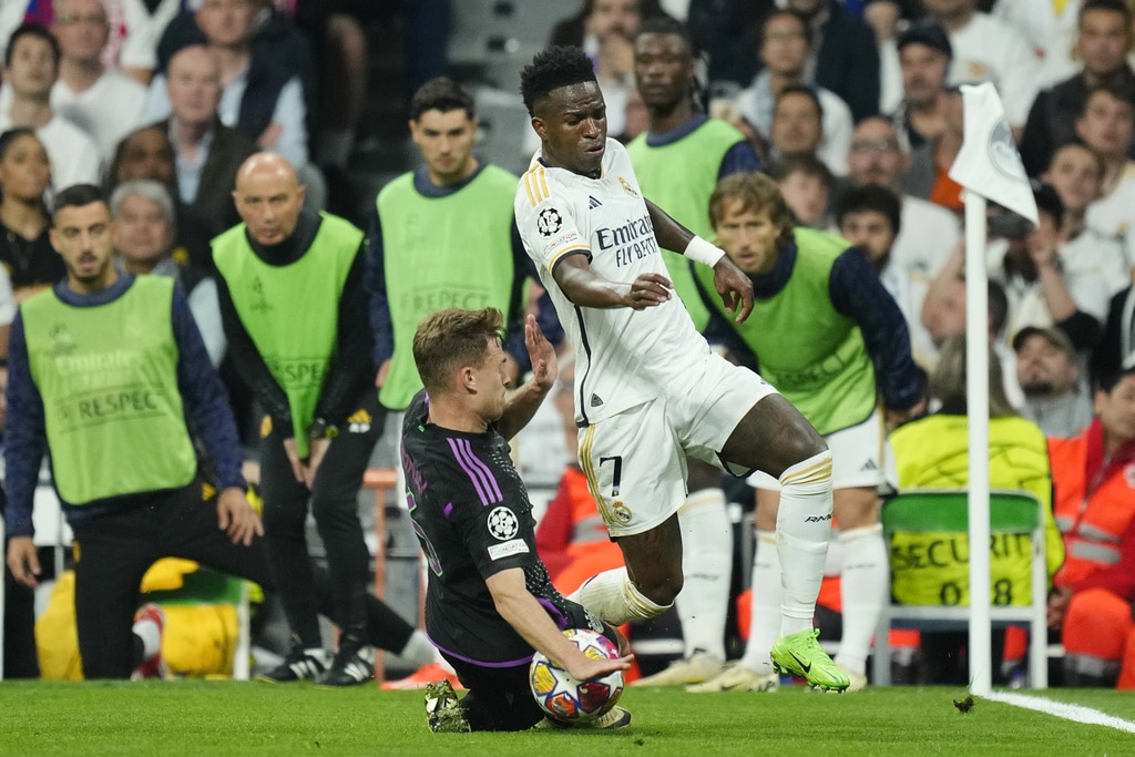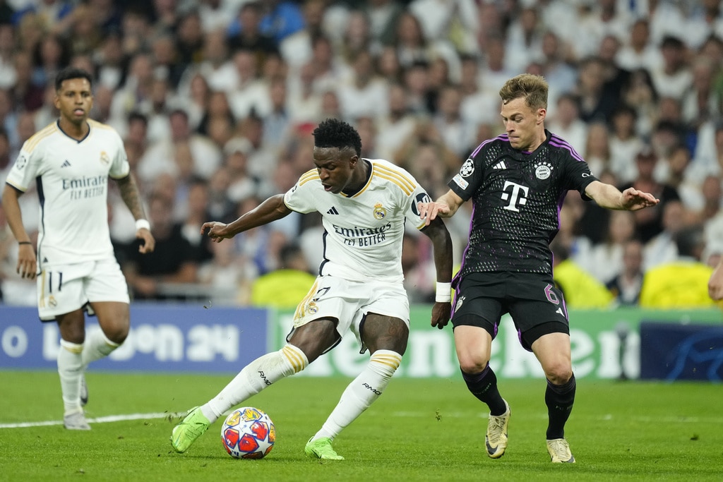 Real Madrid’s Vinicius Junior, left, challenges for the ball with Bayern’s Joshua Kimmich during the Champions League semifinal second leg soccer match between Real Madrid and Bayern Munich at the Santiago Bernabeu stadium in Madrid, Spain, Wednesday, May 8, 2024. (AP Photo/Jose Breton)Real Madrid’s Luka Modric, second left, celebrates at the end of the Champions League semifinal second leg soccer match between Real Madrid and Bayern Munich at the Santiago Bernabeu stadium in Madrid, Spain, Wednesday, May 8, 2024. (AP Photo/Manu Fernandez)Real Madrid’s Antonio Rudiger, right, fights for the ball with Bayern’s Noussair Mazraoui during the Champions League semifinal second leg soccer match between Real Madrid and Bayern Munich at the Santiago Bernabeu stadium in Madrid, Spain, Wednesday, May 8, 2024. (AP Photo/Manu Fernandez)Real Madrid’s head coach Carlo Ancelotti shakes hands with Bayern’s Eric Maxim Choupo-Moting at the end of the Champions League semifinal second leg soccer match between Real Madrid and Bayern Munich at the Santiago Bernabeu stadium in Madrid, Spain, Wednesday, May 8, 2024. (AP Photo/Manu Fernandez)Real Madrid’s Joselu celebrates after scoring his side’s second goal during the Champions League semifinal second leg soccer match between Real Madrid and Bayern Munich at the Santiago Bernabeu stadium in Madrid, Spain, Wednesday, May 8, 2024. (AP Photo/Jose Breton)Bayern’s Eric Maxim Choupo-Moting, left, fights for the ball with Real Madrid’s Dani Carvajal during the Champions League semifinal second leg soccer match between Real Madrid and Bayern Munich at the Santiago Bernabeu stadium in Madrid, Spain, Wednesday, May 8, 2024. (AP Photo/Manu Fernandez)Real Madrid’s Joselu, covered by his teammates, celebrates after scoring his side’s second goal during the Champions League semifinal second leg soccer match between Real Madrid and Bayern Munich at the Santiago Bernabeu stadium in Madrid, Spain, Wednesday, May 8, 2024. (AP Photo/Jose Breton)Bayern’s Alphonso Davies, right, is challenged by Real Madrid’s Dani Carvajal during the Champions League semifinal second leg soccer match between Real Madrid and Bayern Munich at the Santiago Bernabeu stadium in Madrid, Spain, Wednesday, May 8, 2024. (AP Photo/Manu Fernandez)Referee Szymon Marciniak disallows a goal for Real Madrid during the Champions League semifinal second leg soccer match between Real Madrid and Bayern Munich at the Santiago Bernabeu stadium in Madrid, Spain, Wednesday, May 8, 2024. (AP Photo/Manu Fernandez)Bayern’s Alphonso Davies, right, celebrates with his teammate Leroy Sane after scoring his side’s opening goal during the Champions League semifinal second leg soccer match between Real Madrid and Bayern Munich at the Santiago Bernabeu stadium in Madrid, Spain, Wednesday, May 8, 2024. (AP Photo/Manu Fernandez)Bayern’s Alphonso Davies, right, scores his side’s opening goal during the Champions League semifinal second leg soccer match between Real Madrid and Bayern Munich at the Santiago Bernabeu stadium in Madrid, Spain, Wednesday, May 8, 2024. (AP Photo/Manu Fernandez)Bayern’s Alphonso Davies celebrates after scoring his side’s opening goal during the Champions League semifinal second leg soccer match between Real Madrid and Bayern Munich at the Santiago Bernabeu stadium in Madrid, Spain, Wednesday, May 8, 2024. (AP Photo/Manu Fernandez)Real Madrid’s Vinicius Junior, right, challenges for the ball with Bayern’s Joshua Kimmich during the Champions League semifinal second leg soccer match between Real Madrid and Bayern Munich at the Santiago Bernabeu stadium in Madrid, Spain, Wednesday, May 8, 2024. (AP Photo/Jose Breton)