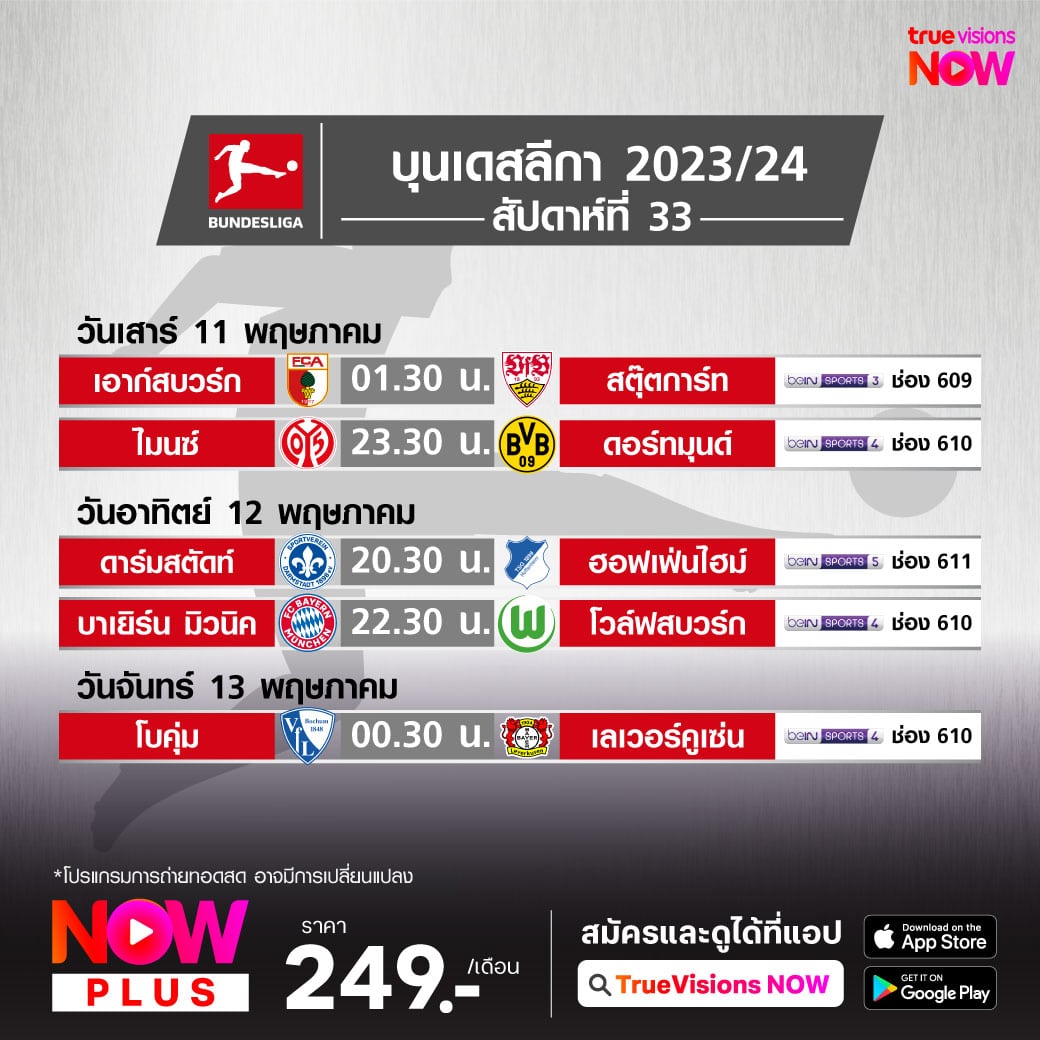 โปรแกรม บุนเดสลีกาเยอรมัน ประจำฤดูกาล 2023/24 สัปดาห์ที่ 33 ทุกคู่