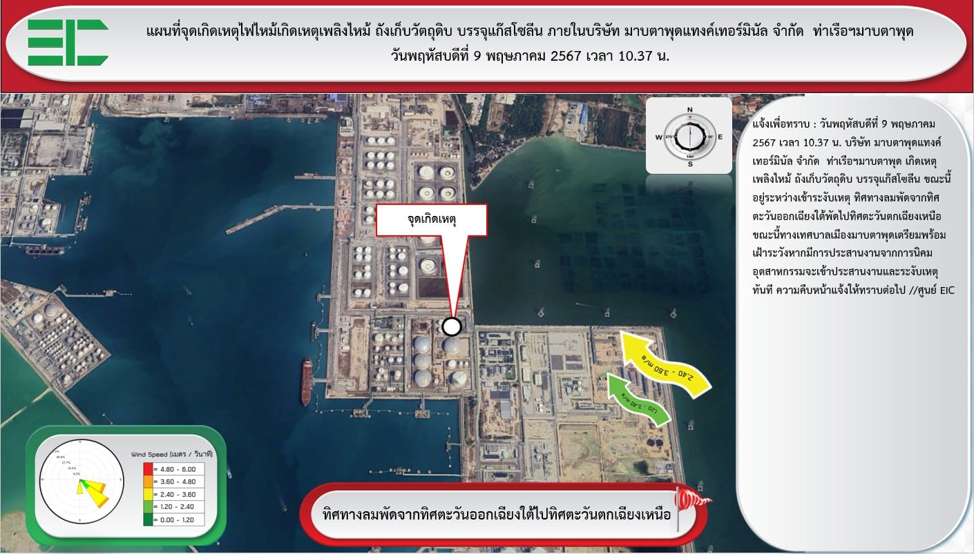 จากกรณีที่ เมื่อช่วงเวลาประมาณ 10.37 น. มีรายงานว่าเกิดเหตุ ไฟไหม้ไหม้ถังเก็บสารเคมี บริษัท มาบตาพุดแทงค์เทอร์มินัล จำกัด ภายในนิคมอุตสาหกรรมมาบตาพุด จ.ระยอง และมีผู้เสียชีวิต 1 ศพ และได้มีการอพยพประชาชนออกจากพื้นที่ ในระยะรัศมี 3-5 กิโลเมตร ตามที่มีรายงานไปก่อนหน้านี้นั้น