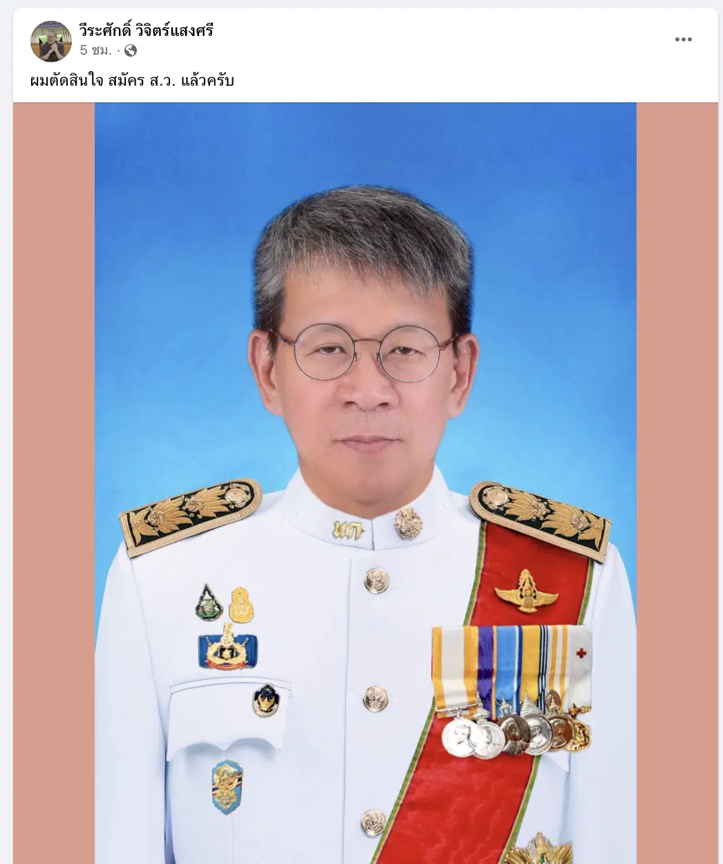 นายวีระศักดิ์เขียนข้อความว่า “ผมตัดสินใจ สมัคร สว. แล้วครับ”