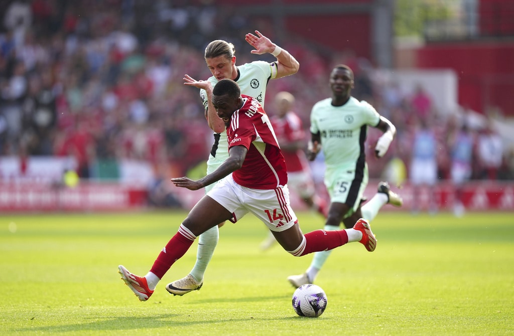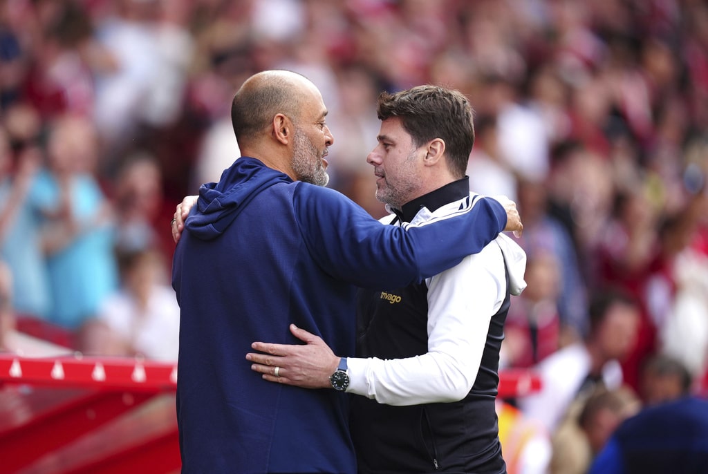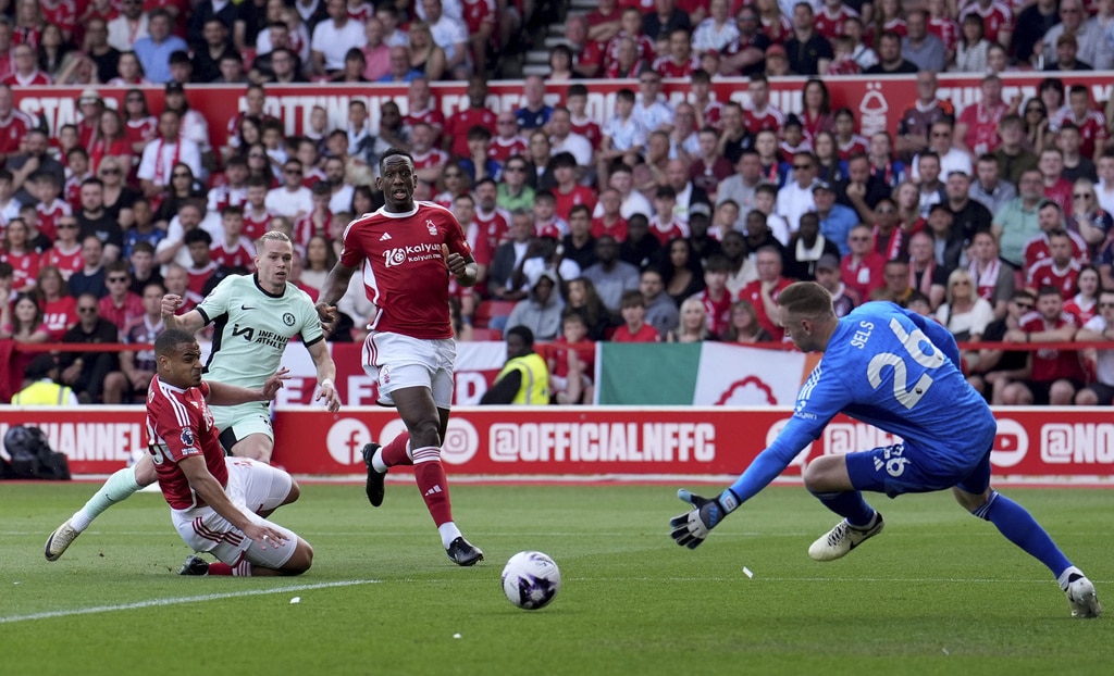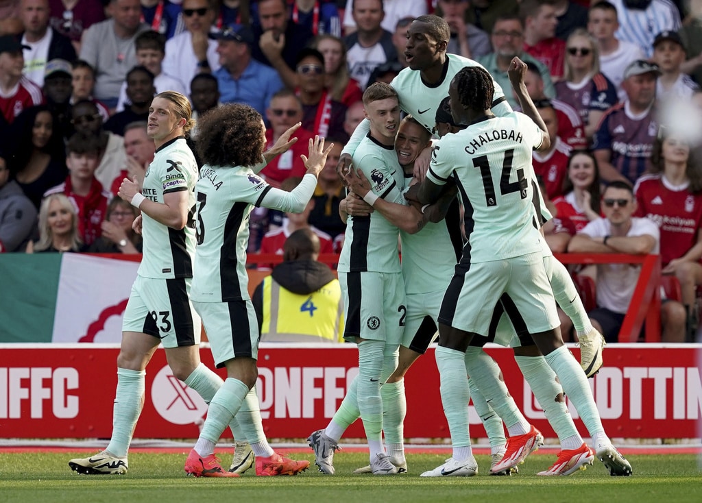 Chelsea’s Mykhaylo Mudryk, second left, scores the opening goal during the English Premier League soccer match between Nottingham Forest and FC Chelsea in Nottingham, England, Saturday, May 11, 2024. (Martin Rickett/PA via AP)Nottingham Forest’s manager Nuno Espirito Santo, front, applauds after the English Premier League soccer match between Nottingham Forest and FC Chelsea in Nottingham, England, Saturday, May 11, 2024. (Mike Egerton/PA via AP)Chelsea’s scorer Nicolas Jackson, left, and his teammate Reece James, right, celebrate their side’s third goal during the English Premier League soccer match between Nottingham Forest and FC Chelsea in Nottingham, England, Saturday, May 11, 2024. (Mike Egerton/PA via AP)Nottingham Forest’s Willy Boly, bottom, and Chelsea’s Mykhaylo Mudryk, top, challenge for the ball during the English Premier League soccer match between Nottingham Forest and FC Chelsea in Nottingham, England, Saturday, May 11, 2024. (Mike Egerton/PA via AP)Chelsea’s Moises Caicedo, left, and Nottingham Forest’s Morgan Gibbs-White, right, challenge for the ball during the English Premier League soccer match between Nottingham Forest and FC Chelsea in Nottingham, England, Saturday, May 11, 2024. (Martin Rickett/PA via AP)Chelsea’s Moises Caicedo, left, and Nottingham Forest’s Morgan Gibbs-White, right, challenge for the ball during the English Premier League soccer match between Nottingham Forest and FC Chelsea in Nottingham, England, Saturday, May 11, 2024. (Martin Rickett/PA via AP)Chelsea’s Conor Gallagher, left, and Nottingham Forest’s Callum Hudson-Odoi, right, challenge for the ball during the English Premier League soccer match between Nottingham Forest and FC Chelsea in Nottingham, England, Saturday, May 11, 2024. (Martin Rickett/PA via AP)Nottingham Forest’s Willy Boly, front, celebrates after scoring his side’s first goal during the English Premier League soccer match between Nottingham Forest and FC Chelsea in Nottingham, England, Saturday, May 11, 2024. (Martin Rickett/PA via AP)Nottingham Forest manager Nuno Espirito Santo, left, greets Chelsea manager Mauricio Pochettino, right, before the English Premier League soccer match between Nottingham Forest and FC Chelsea in Nottingham, England, Saturday, May 11, 2024. (Martin Rickett/PA via AP)