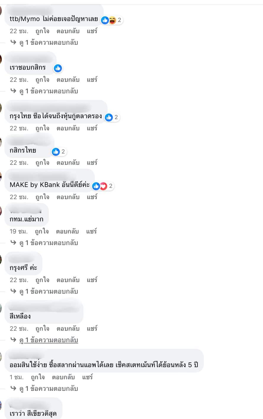 ขณะที่บางส่วนชอบแอปของธนาคารกรุงไทย “ซื้อได้จนถึงหุ้นกู้ตลาดรอง” แถมมีบริการแจ้งเตือนในไลน์ด้วยว่ามีเงินเข้าออกตอนไหนบ้าง “กรุงไทย next กับ scb มีไลน์เด้งว่าเงินเข้าจากไหนออกไปไหน” แต่ก็มีปัญหาเรื่องสแกนใบหน้ายากบ้าง “กรุงไทย หนีไป สแกนหน้ายากเกิน”