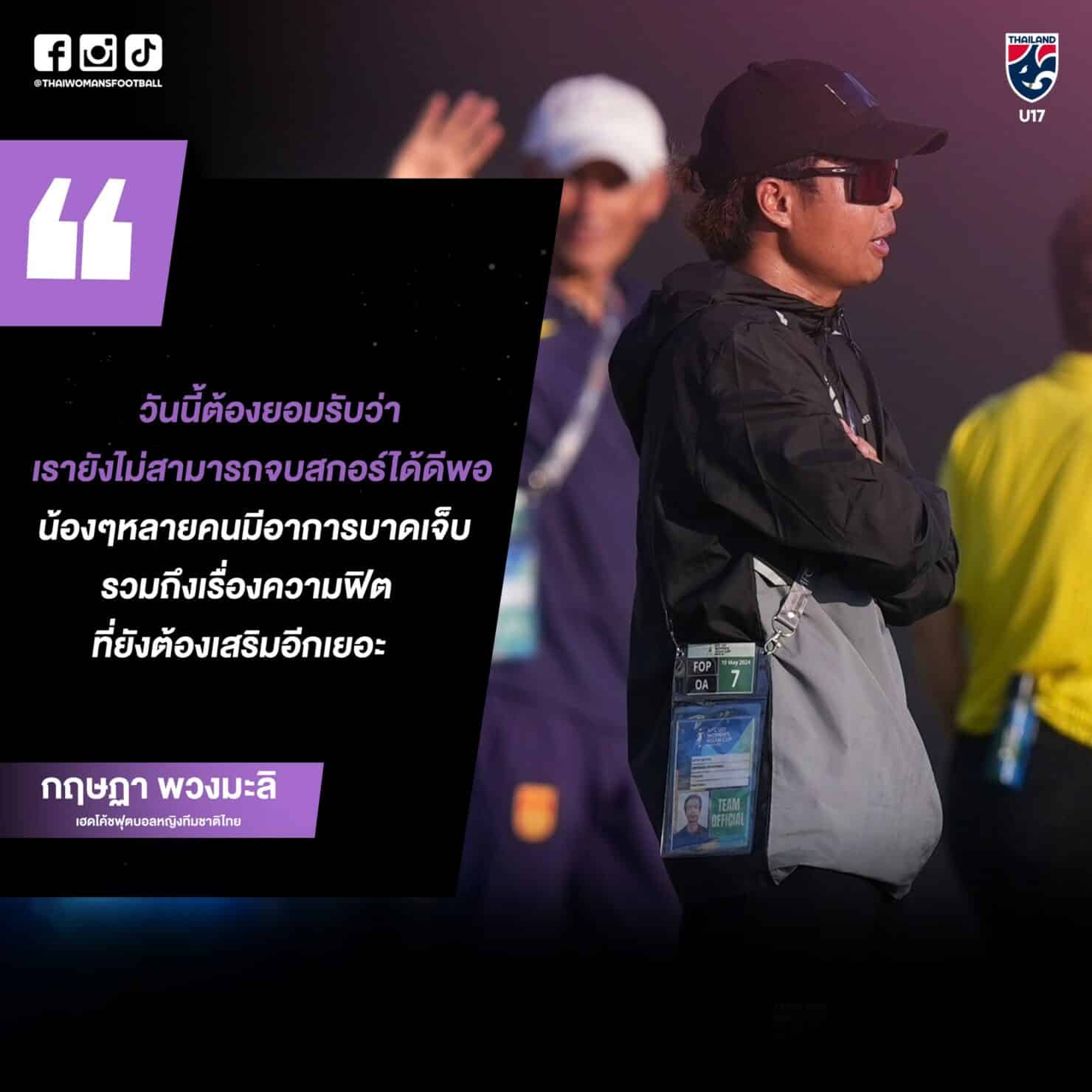 ความเคลื่อนไหวหลังการแข่งขัน ฟุตบอลหญิงชิงแชมป์เอเชีย รุ่นอายุไม่เกิน 17 ปี รอบสุดท้าย รอบแบ่งกลุ่ม กลุ่มบี นัดที่สอง ซึ่ง ทีมชาติไทย แพ้ จีน 0-3 โค้ชคิม กฤษฏา พวงมะลิ เฮดโค้ชฟุตบอลหญิงทีมชาติไทย ได้กล่าวถึงผลงานในนัดนี้ไว้ว่า