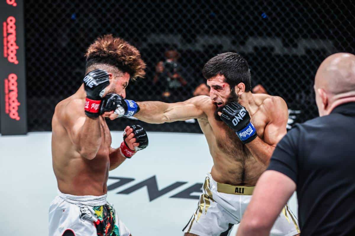 ด้วยฝีไม้ลายมือที่ไม่เป็นสองรองใคร ทำให้ “อาลี” ได้โอกาสเข้ามาพิสูจน์ตัวเอง ในศึก ONE166 ที่จัดขึ้นเป็นครั้งแรกที่ประเทศกาตาร์ เมื่อเดือน มี.ค.ที่ผ่านมา โดยลงแข่งขันในกติกามวยไทย พบกับ “ซากาเรีย เอล จามารี” ซึ่งเขาก็ไม่พลาดที่จะประทับตราแจ้งเกิดได้ทันที ด้วยการกดหมัดเอาชนะน็อกไปได้ในช่วงต้นยกที่ 2