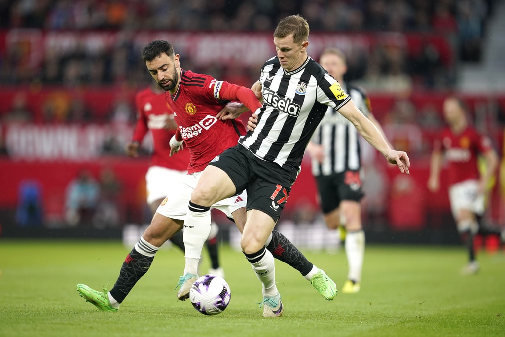 Manchester United’s Bruno Fernandes, left, challenges for the ball with Newcastle’s Emil Krafth during the English Premier League soccer match between Manchester United and Newcastle United, in Manchester, England, Wednesday, May 15, 2024. (AP Photo/Dave Thompson)Manchester United’s head coach Erik ten Hag walks on the pitch with Manchester United’s Bruno Fernandes at the end of the English Premier League soccer match between Manchester United and Newcastle United, in Manchester, England, Wednesday, May 15, 2024. (AP Photo/Dave Thompson)Manchester United’s Bruno Fernandes kicks the ball during the English Premier League soccer match between Manchester United and Newcastle United, in Manchester, England, Wednesday, May 15, 2024. (AP Photo/Dave Thompson)Manchester United’s Anthony Martial, right, and Manchester United’s Diogo Dalot during the English Premier League soccer match between Manchester United and Newcastle United, in Manchester, England, Wednesday, May 15, 2024. (AP Photo/Dave Thompson)Manchester United’s Sofyan Amrabat, left, challenges for the ball with Newcastle’s Alexander Isak during the English Premier League soccer match between Manchester United and Newcastle United, in Manchester, England, Wednesday, May 15, 2024. (AP Photo/Dave Thompson)Newcastle’s Anthony Gordon celebrates after scoring his side’s opening goal during the English Premier League soccer match between Manchester United and Newcastle United, in Manchester, England, Wednesday, May 15, 2024. (AP Photo/Dave Thompson)Manchester United’s Sofyan Amrabat blocks the shot from Newcastle United’s Alexander Isak during the English Premier League soccer match between Manchester United and Newcastle United, in Manchester, England, Wednesday, May 15, 2024. (Martin Rickett/PA via AP)Newcastle’s Anthony Gordon scores his side’s opening goal during the English Premier League soccer match between Manchester United and Newcastle United, in Manchester, England, Wednesday, May 15, 2024. (AP Photo/Dave Thompson)Manchester United’s Kobbie Mainoo celebrates after scoring his side’s opening goal during the English Premier League soccer match between Manchester United and Newcastle United, in Manchester, England, Wednesday, May 15, 2024. (AP Photo/Dave Thompson)Manchester United’s Kobbie Mainoo, centre, celebrates after scoring his side’s opening goal during the English Premier League soccer match between Manchester United and Newcastle United, in Manchester, England, Wednesday, May 15, 2024. (AP Photo/Dave Thompson)