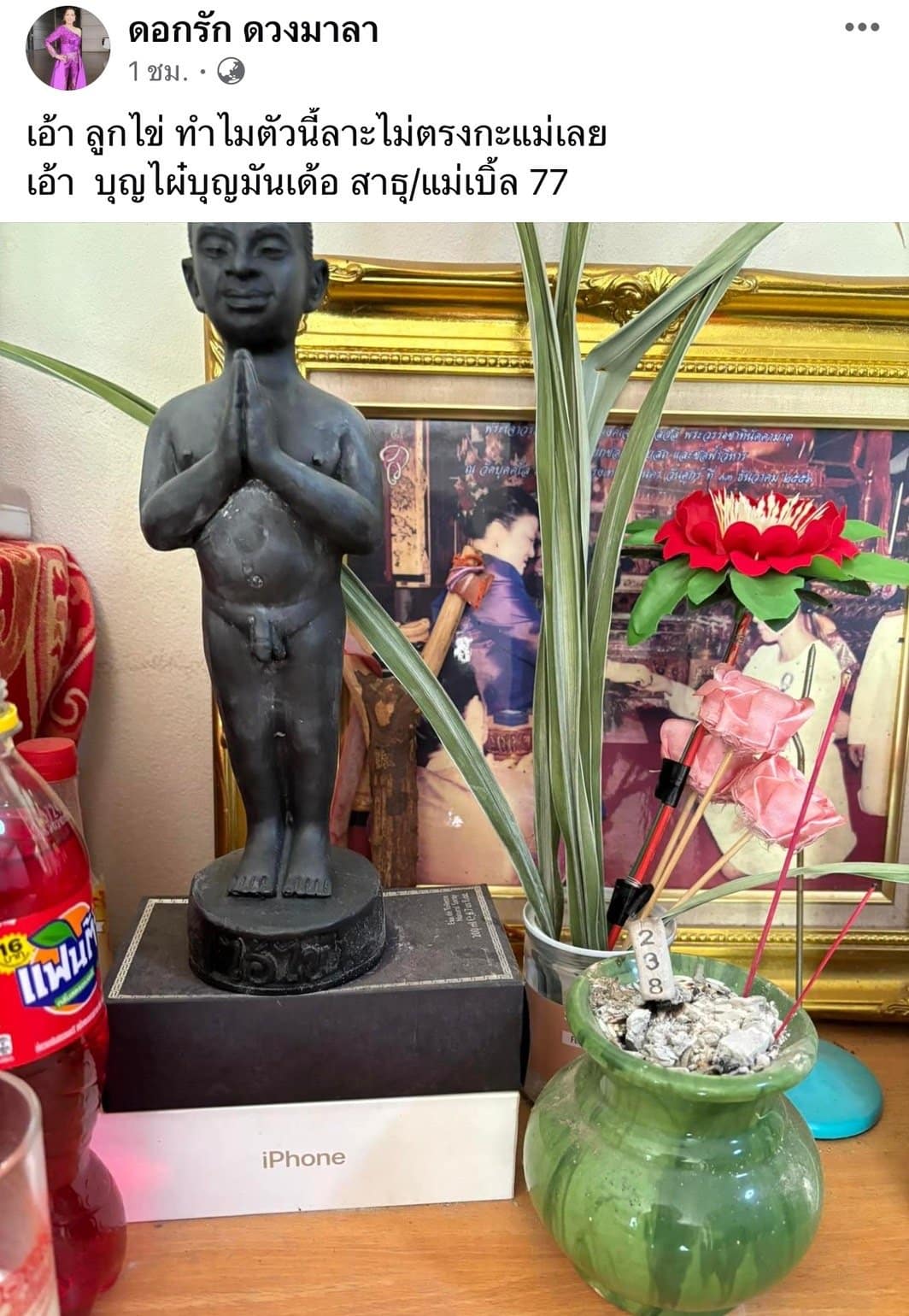 ไม่เพียงเท่านั้น ดอกรักยังได้จุดธูปขอเลขเด็ดจากกุมารไอ้ไข่ ซึ่งปรากฏเป็นเลข 238 โดยเจ้าตัวระบุว่าเลขดังกล่าวไม่ตรงกับเลขที่ตนชอบ แต่ก็ขอให้เป็นบุญของแต่ละคน