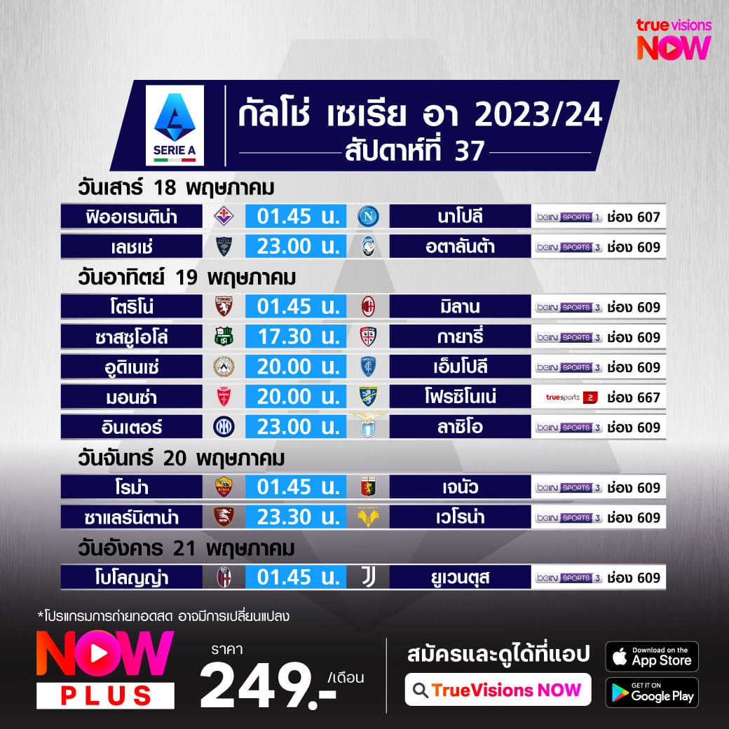 โปรแกรม กัลโช่ เซเรีย อา ประจำฤดูกาล 2023/24 สัปดาห์ที่ 37 ทุกคู่