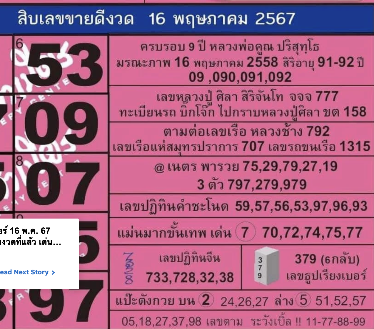 ผลสลากกินแบ่งรัฐบาลงวดนี้ 16 พฤษภาคม 2567 ฮือฮา เลขท้าย 2 ตัว 3 ตัว เข้าตรงเลขมงคลพระเกจิดัง แม่จำเนียรเคยแจกใบชมพูให้แล้ว