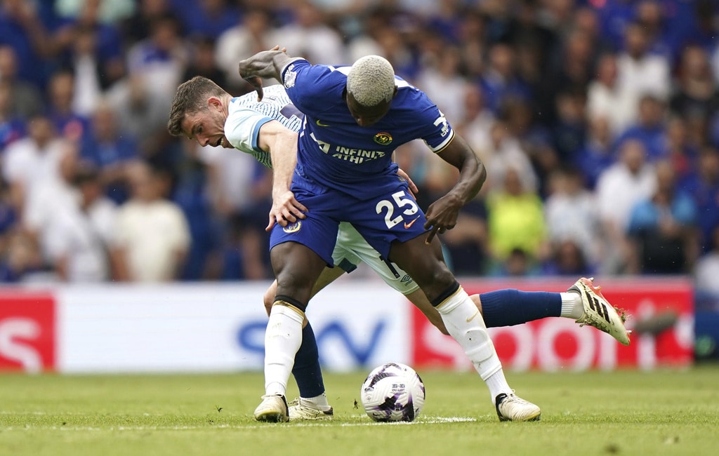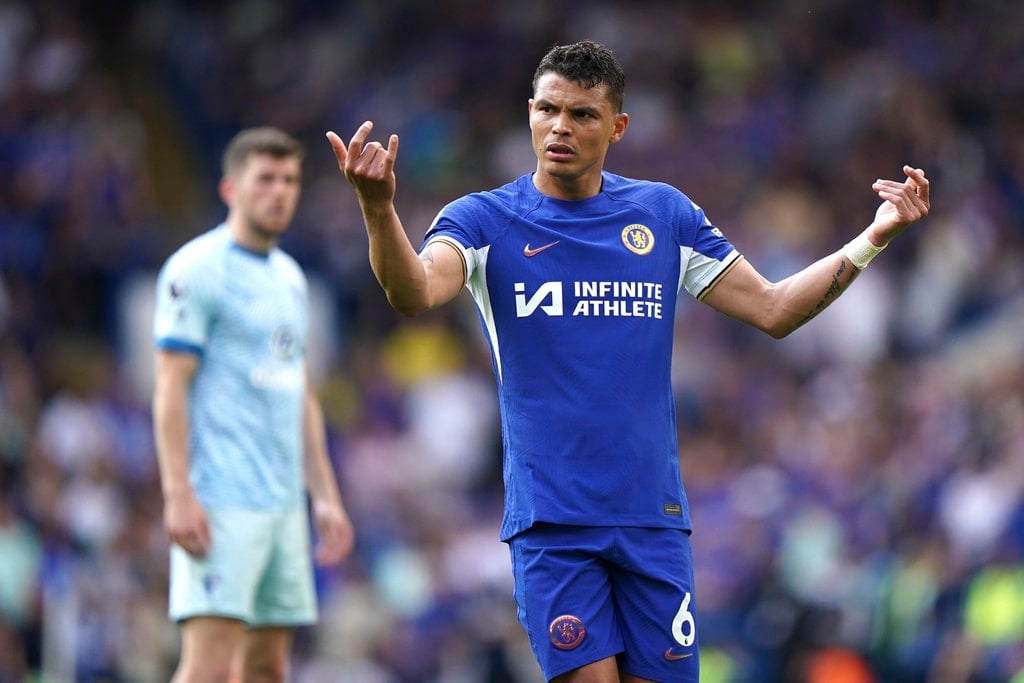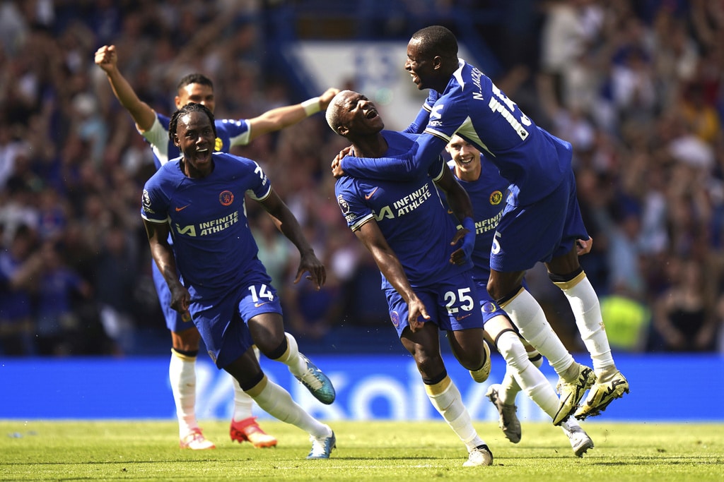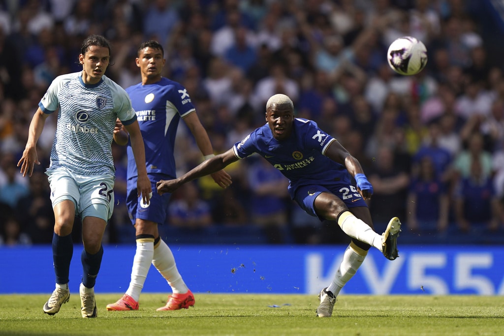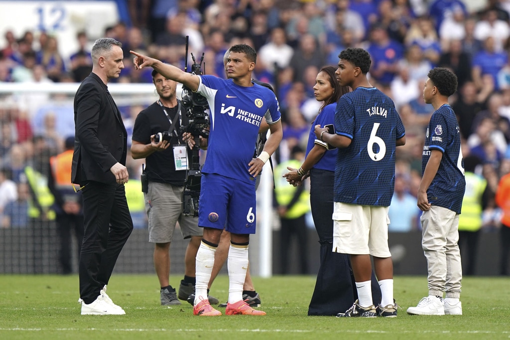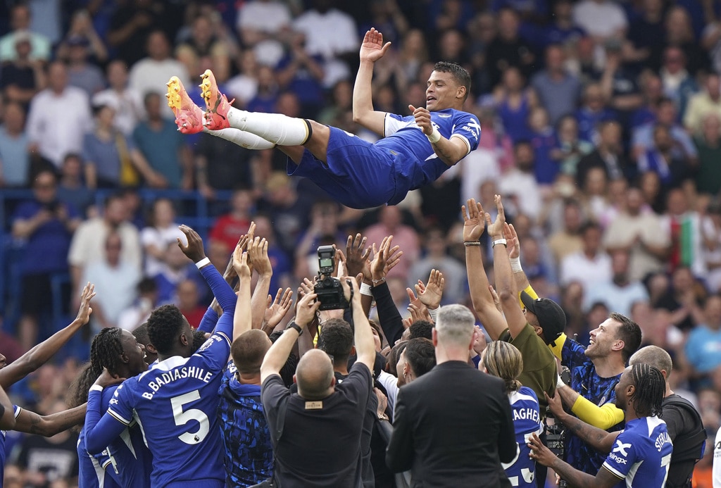Chelsea’s Moises Caicedo scores their side’s first goal of the game from the half-way line during the Premier League match between Chelsea FC and AFC Bournemouth at Stamford Bridge, London, Sunday May 19, 2024. (Bradley Collyer/PA via AP)Chelsea’s Thiago Silva gestures during the English Premier League soccer match between Chelsea FC and AFC Bournemouth at Stamford Bridge, London, Sunday, May 19, 2024. (Bradley Collyer/PA via AP)Chelsea’s Thiago Silva gestures as he stands with his family after the final whistle of the English Premier League soccer match between Chelsea FC and AFC Bournemouth at Stamford Bridge, London, Sunday, May 19, 2024. (Bradley Collyer/PA via AP)Chelsea’s Thiago Silva, centre, is lifted up into the air by his teammates after the final whistle, during the English Premier League soccer match between Chelsea FC and AFC Bournemouth at Stamford Bridge, London, Sunday, May 19, 2024. (Bradley Collyer/PA via AP)Chelsea’s Raheem Sterling, right and Bournemouth’s Lewis Cook battle for the ball, during the English Premier League soccer match between Chelsea FC and AFC Bournemouth at Stamford Bridge, London, Sunday, May 19, 2024. (Bradley Collyer/PA via AP)Chelsea’s Moises Caicedo, foreground and Bournemouth’s Ryan Christie vie for the ball, during the English Premier League soccer match between Chelsea FC and AFC Bournemouth at Stamford Bridge, London, Sunday, May 19, 2024. (Bradley Collyer/PA via AP)Chelsea’s Raheem Sterling reacts, during the English Premier League soccer match between Chelsea FC and AFC Bournemouth at Stamford Bridge, London, Sunday May 19, 2024. (Bradley Collyer/PA via AP)Chelsea’s Moises Caicedo, centre, celebrates after scoring their side’s first goal of the game from the half-way line during the Premier League match between Chelsea FC and AFC Bournemouth at Stamford Bridge, London, Sunday May 19, 2024. (Bradley Collyer/PA via AP)