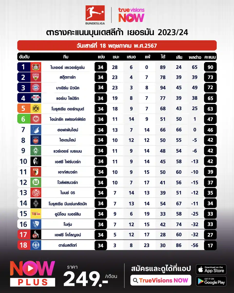 >> ตารางคะแนน บุนเดสลีกา เยอรมัน 2023 2024 ล่าสุด เช็คคะแนนทุกทีมได้ที่นี่ <<