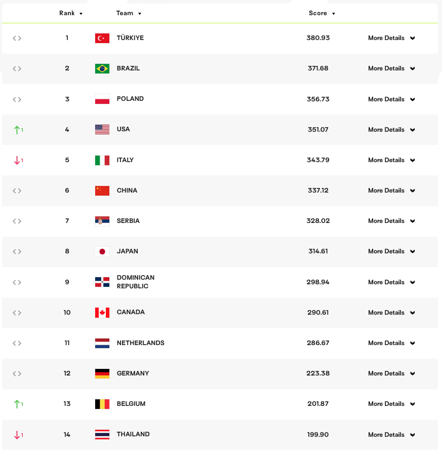 ความพ่ายแพ้ครั้งนี้ไม่เพียงแต่ทำให้ทีมชาติไทยแพ้ 4 นัดรวด แต่ยังส่งผลให้อันดับโลกของทีมร่วงลงด้วย จากทีมที่เคยยืนหยัดอยู่อันดับ 13 ของโลก ก่อนเริ่มการแข่งขัน VNL 2024 ด้วยคะแนนสะสม 222 คะแนน บัดนี้ ทีมชาติไทยต้องพบกับความจริงอันโหดร้าย เมื่อคะแนนสะสมอันดับโลกหายไปถึง 22.11 คะแนน เหลือเพียง 199.90 คะแนน หล่นลงมาอยู่อันดับที่ 14 ของโลก