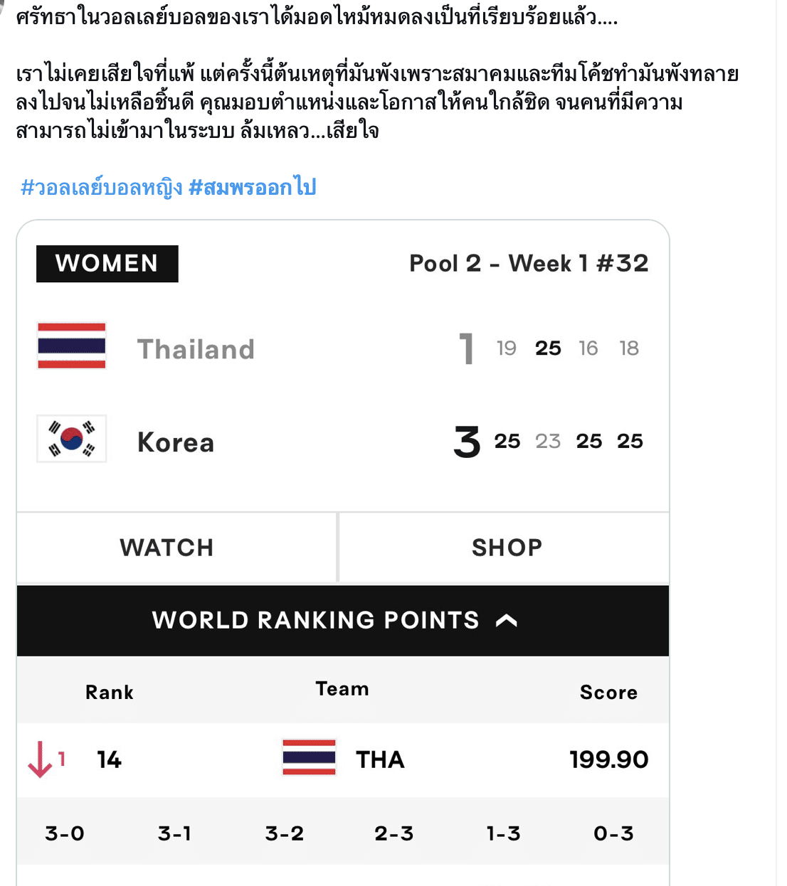 - ฟอร์มหลุดลุ่ย! ผลวอลเลย์บอลไทย แพ้เกาหลีใต้ 1-3 เซต ช็อกในรอบ 4 ปี เนชั่นส์ลีก 2024