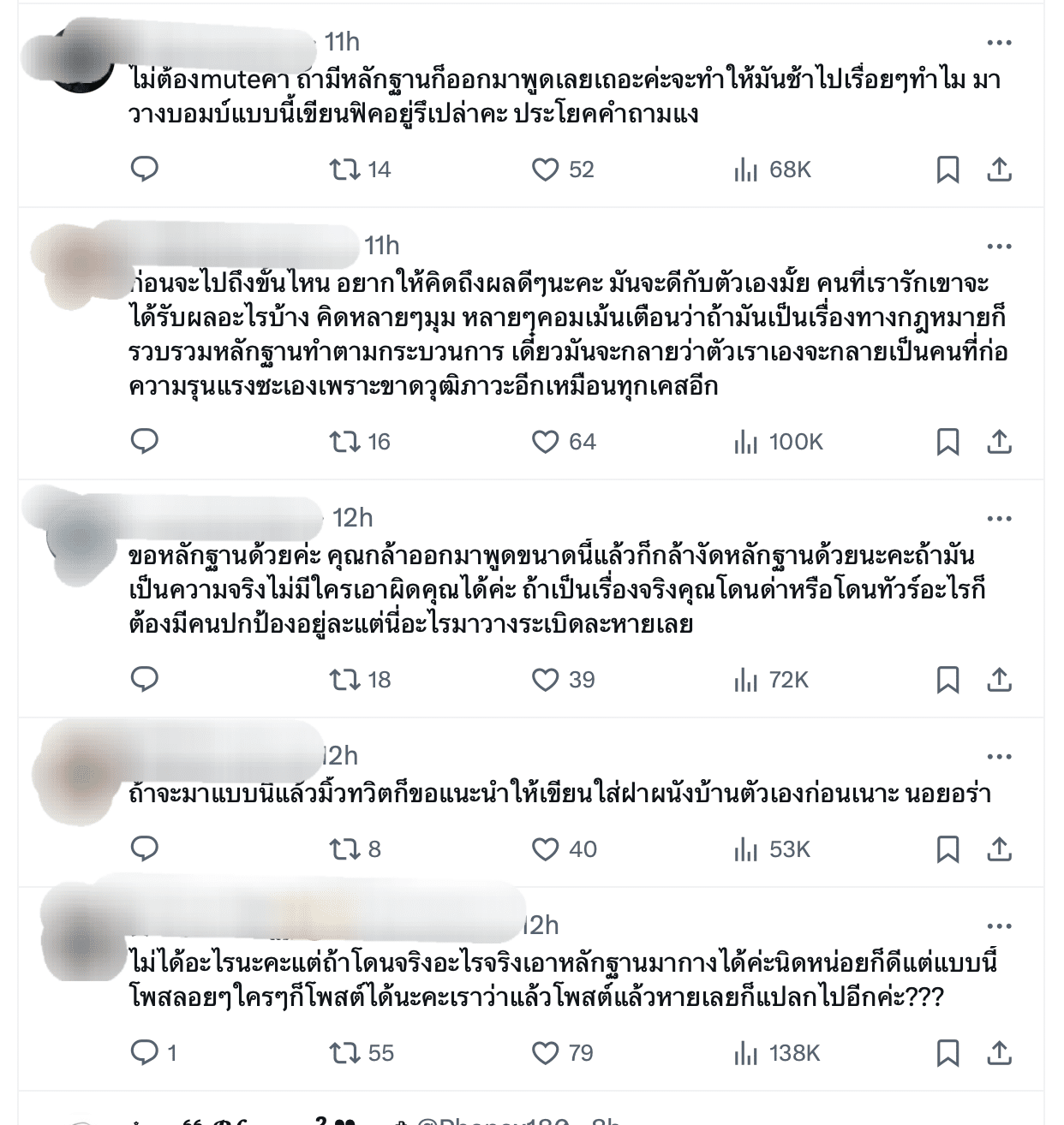 “ถ้าต่อไปคนจะไม่เชื่อเหยื่อก็เพราะคุณนะคะ มาวางบอมละหายไปเลย ขอหลักฐานด้วยค่ะ ถ้าเหี้ยจริงจะรุมด่าให้ แต่ถ้าไม่มึงคือคนต่อไป”