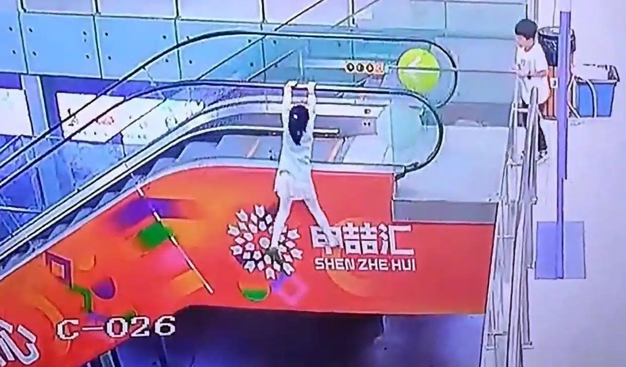 เกิดเหตุการณ์ระทึกขวัญที่ห้างสรรพสินค้าแห่งหนึ่งในเมืองเซี่ยงไฮ้ ประเทศจีน เมื่อเด็กหญิงคนหนึ่งพลัดตกลงไปห้อยต่องแต่งอยู่นอกราวบันไดเลื่อน ขณะที่บันไดเลื่อนกำลังเคลื่อนตัวขึ้นสู่ชั้นสอง