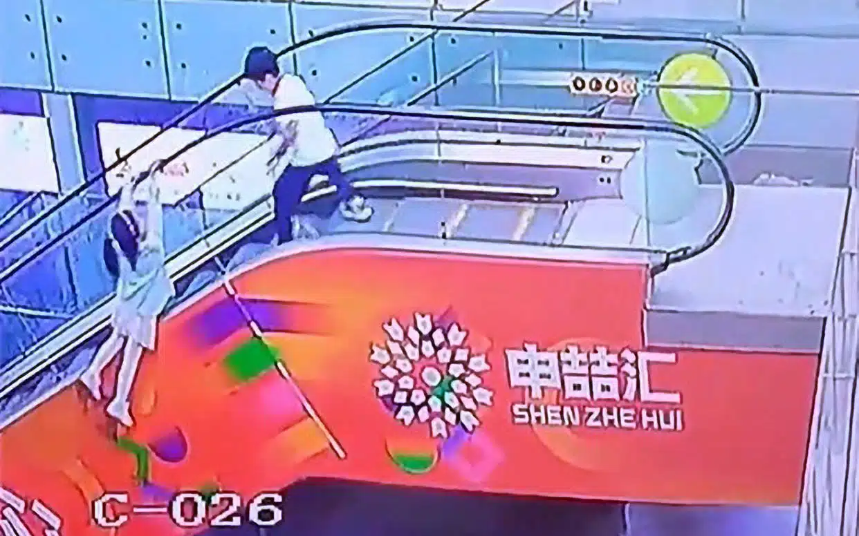 เกิดเหตุการณ์ระทึกขวัญที่ห้างสรรพสินค้าแห่งหนึ่งในเมืองเซี่ยงไฮ้ ประเทศจีน เมื่อเด็กหญิงคนหนึ่งพลัดตกลงไปห้อยต่องแต่งอยู่นอกราวบันไดเลื่อน ขณะที่บันไดเลื่อนกำลังเคลื่อนตัวขึ้นสู่ชั้นสอง