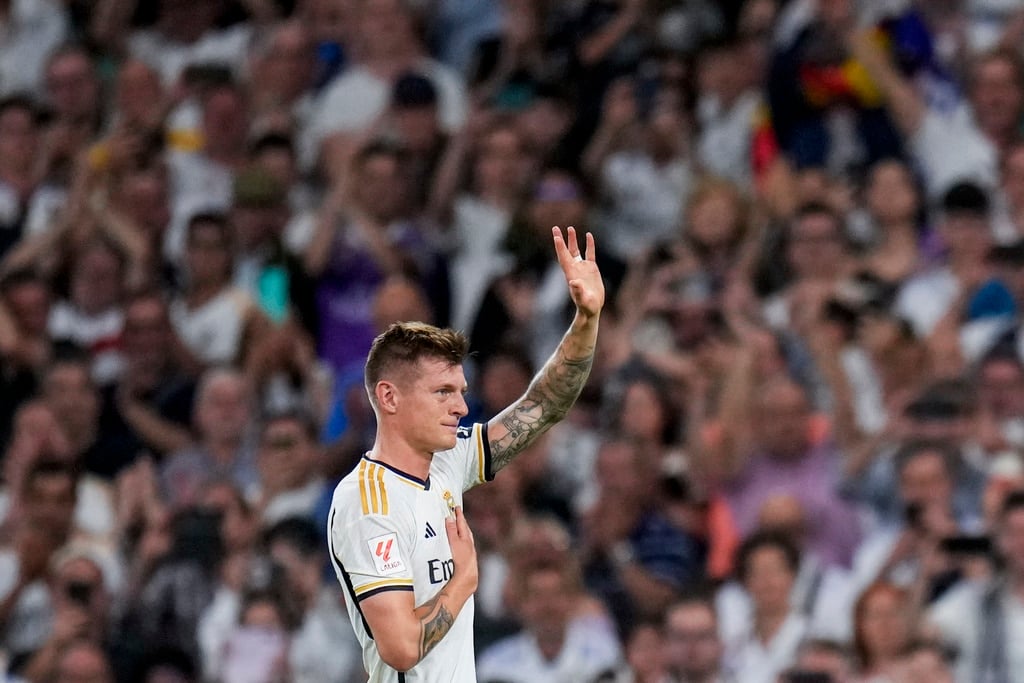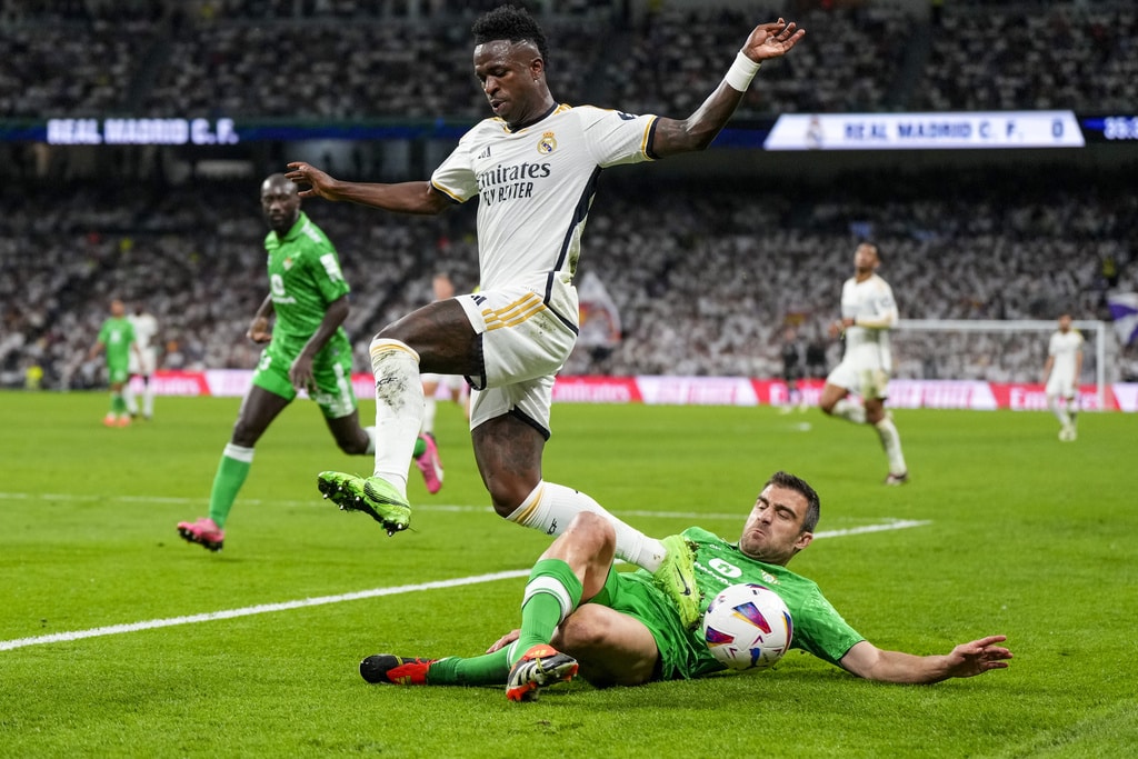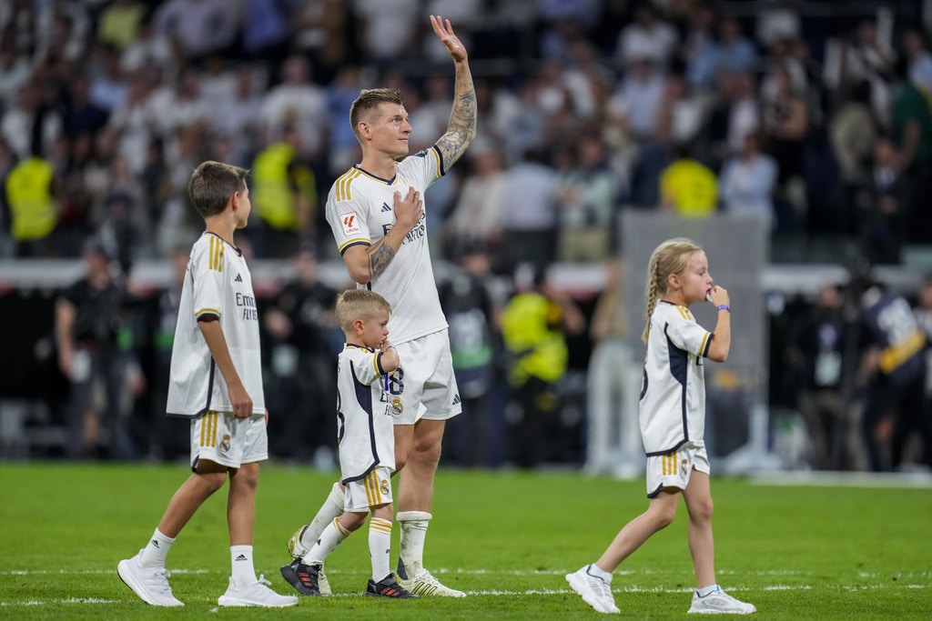 Real Madrid’s Vinicius Junior vies for the ball, center, next to Betis’ Sokratis Papastathopoulos during a Spanish La Liga soccer match between Real Madrid and Betis at the Santiago Bernabeu stadium in Madrid, Spain, Saturday, May 25, 2024. (AP Photo/Manu Fernandez)Real Madrid’s Toni Kroos waves during the Spanish La Liga soccer match between Real Madrid and Betis at the Santiago Bernabeu stadium in Madrid, Spain, Saturday, May 25, 2024. Real Madrid said the 34-year-old German international “has decided to bring an end to his time as a professional footballer following Euro 2024”.(AP Photo/Manu Fernandez)Real Madrid’s Toni Kroos waves at the end of the Spanish La Liga soccer match between Real Madrid and Betis at the Santiago Bernabeu stadium in Madrid, Spain, Saturday, May 25, 2024. Real Madrid said the 34-year-old German international “has decided to bring an end to his time as a professional footballer following Euro 2024”.(AP Photo/Manu Fernandez)Real Madrid’s Toni Kroos is lifted up by his teammates during a Spanish La Liga soccer match between Real Madrid and Betis at the Santiago Bernabeu stadium in Madrid, Spain, Saturday, May 25, 2024. Real Madrid said the 34-year-old German international “has decided to bring an end to his time as a professional footballer following Euro 2024”.(AP Photo/Manu Fernandez)Real Madrid and Betis players play during a Spanish La Liga soccer match between Real Madrid and Betis at the Santiago Bernabeu stadium in Madrid, Spain, Saturday, May 25, 2024. (AP Photo/Manu Fernandez)Real Madrid’s Toni Kroos kicks the ball during a Spanish La Liga soccer match between Real Madrid and Betis at the Santiago Bernabeu stadium in Madrid, Spain, Saturday, May 25, 2024. (AP Photo/Manu Fernandez)Real Madrid’s Rodrygo, left, fights for the ball with Betis’ Johnny Cardoso during a Spanish La Liga soccer match between Real Madrid and Betis at the Santiago Bernabeu stadium in Madrid, Spain, Saturday, May 25, 2024. (AP Photo/Manu Fernandez)Real Madrid’s Vinicius Junior, top, vies for the ball, with Betis’ Sokratis Papastathopoulos during a Spanish La Liga soccer match between Real Madrid and Betis at the Santiago Bernabeu stadium in Madrid, Spain, Saturday, May 25, 2024. (AP Photo/Manu Fernandez)Real Madrid’s Toni Kroos gestures ahead the Spanish La Liga soccer match between Real Madrid and Betis at the Santiago Bernabeu stadium in Madrid, Spain, Saturday, May 25, 2024. (AP Photo/Manu Fernandez)Real Madrid’s Vinicius Junior lies on the pitch during a Spanish La Liga soccer match between Real Madrid and Betis at the Santiago Bernabeu stadium in Madrid, Spain, Saturday, May 25, 2024. (AP Photo/Manu Fernandez)Real Madrid’s Rodrygo, left, fights for the ball with Betis’ Marc Roca during a Spanish La Liga soccer match between Real Madrid and Betis at the Santiago Bernabeu stadium in Madrid, Spain, Saturday, May 25, 2024. (AP Photo/Manu Fernandez)