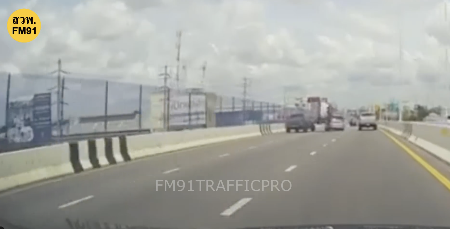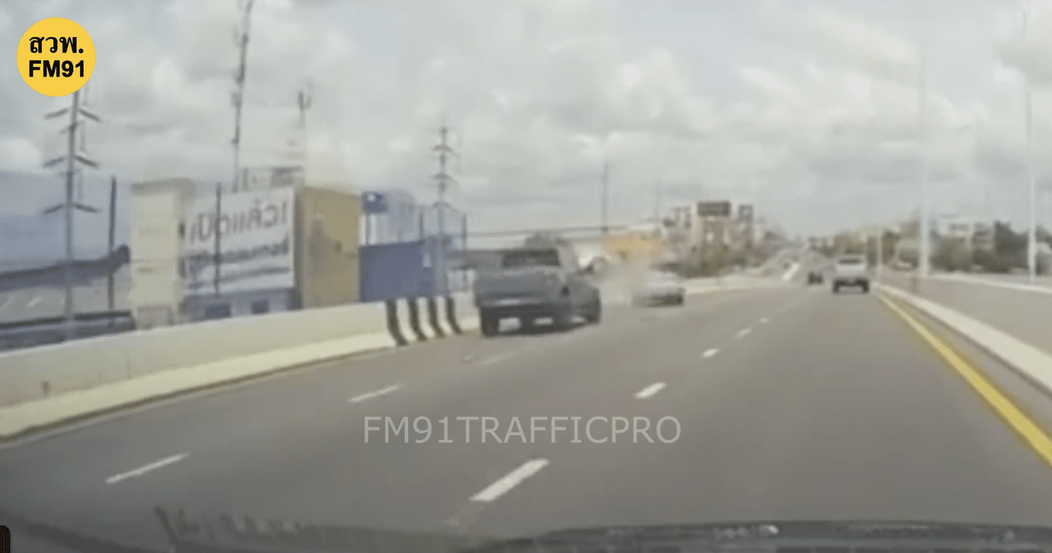 จุดจบสายมุด ซิ่งเก๋งแทรกกลาง ถูกเบียดตกทางยกระดับ แต่รอดชีวิตปาฏิหาริย์