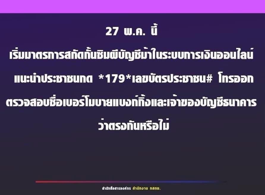 เจ้าของเบอร์มือถือ สามารถตรวจสอบว่าข้อมูลว่าซิมการ์ดชื่อตรงตรงกันหรือไม่ กด *179* ตามด้วยเลขบัตรประชาชน แล้วกด # โทรออก หากข้อมูลไม่ตรงกัน ธนาคารจะแจ้งให้เราไปลงทะเบียนปรับปรุงข้อมูลที่หน่วยงานที่กำหนด