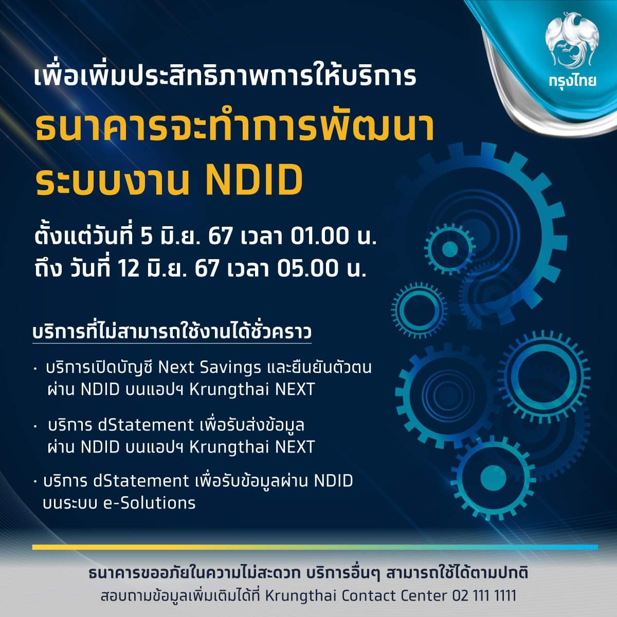 ธนาคารจะทำการพัฒนาระบบงาน NDID ทำให้มีบริการที่ไม่สามารถใช้งานได้ชั่วคราว ดังนี้