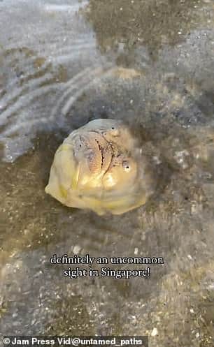สำนักข่าว dailymail รายงาน เมื่อเร็วๆ นี้ เดนนิส ชาน หนุ่มชาวสิงคโปร์ ได้พบกับปลาหน้าตาสุดประหลาด เกยตื้นอยู่บนชายหาด สภาพของมันนอนนิ่งจ้องมองขึ้นฟ้า ทำเอาเขาขนลุกซู่ ด้วยความน่าสะพรึงกลัวนี้ เขาจึงตัดสินใจบันทึกคลิปวิดีโอสั้นๆ ลงบน Instagram ส่วนตัว