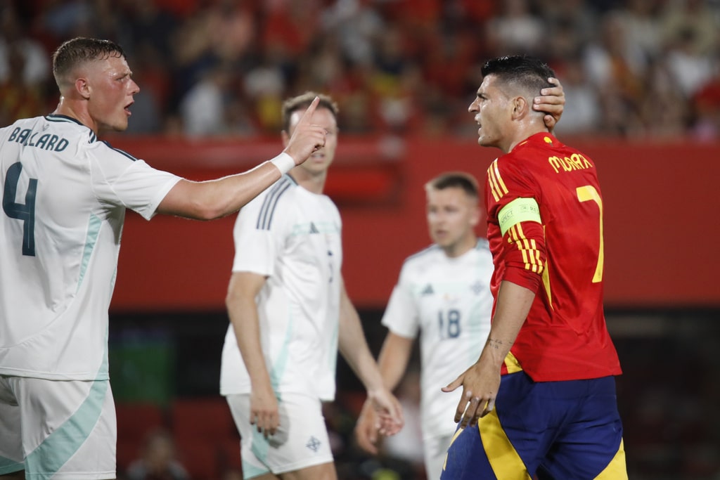 Spain’s Rodri dribbles the ball during the international friendly soccer match between Spain and Northern Ireland at the Son Moix stadium in Palma de Mallorca, Spain, Saturday, June 8, 2024. (AP Photo/Francisco Ubilla)Spain’s coach Luis de la Fuente gestures during the international friendly soccer match between Spain and Northern Ireland at the Son Moix stadium in Palma de Mallorca, Spain, Saturday, June 8, 2024. (AP Photo/Francisco Ubilla)Spain’s Alejandro Grimaldo runs for the ball during the international friendly soccer match between Spain and Northern Ireland at the Son Moix stadium in Palma de Mallorca, Spain, Saturday, June 8, 2024. (AP Photo/Francisco Ubilla)Spain’s Lamine Yamal, left, is substituted by Joselu during the international friendly soccer match between Spain and Northern Ireland at the Son Moix stadium in Palma de Mallorca, Spain, Saturday, June 8, 2024. (AP Photo/Francisco Ubilla)Spain’s Joselu, right, and Northern Ireland’s Jonny Evans compete for the ball during the international friendly soccer match between Spain and Northern Ireland at the Son Moix stadium in Palma de Mallorca, Spain, Saturday, June 8, 2024. (AP Photo/Francisco Ubilla)Spain’s Mikel Oyarzabal, right, reacts after scoring his side’s 5th goal during the international friendly soccer match between Spain and Northern Ireland at the Son Moix stadium in Palma de Mallorca, Spain, Saturday, June 8, 2024. (AP Photo/Francisco Ubilla)Spain’s Mikel Oyarzabal celebrates scoring his side’s 5th goal during the international friendly soccer match between Spain and Northern Ireland at the Son Moix stadium in Palma de Mallorca, Spain, Saturday, June 8, 2024. (AP Photo/Francisco Ubilla)Northern Ireland’s Daniel Ballard, right, argues with Spain’s Alvaro Morata during the international friendly soccer match between Spain and Northern Ireland at the Son Moix stadium in Palma de Mallorca, Spain, Saturday, June 8, 2024. (AP Photo/Francisco Ubilla)Northern Ireland’s Isaac Price, center, reacts after missing a chance to score during the international friendly soccer match between Spain and Northern Ireland at the Son Moix stadium in Palma de Mallorca, Spain, Saturday, June 8, 2024. (AP Photo/Francisco Ubilla)Spain’s Pedri celebrates scoring his side’s 3rd goal during the international friendly soccer match between Spain and Northern Ireland at the Son Moix stadium in Palma de Mallorca, Spain, Saturday, June 8, 2024. (AP Photo/Francisco Ubilla)