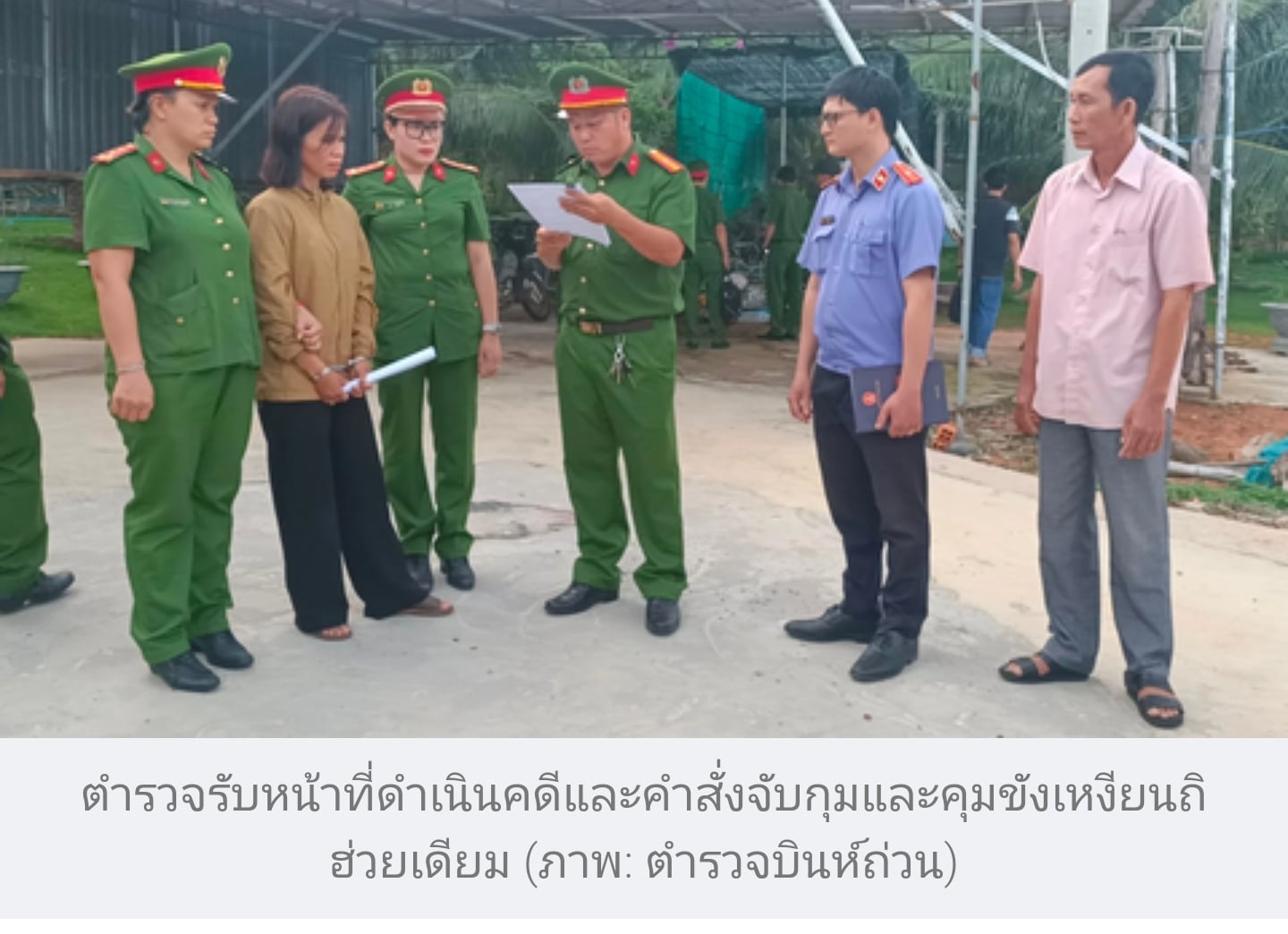 เมื่อวันที่ 9 มิถุนายน ที่ผ่านมา กองสืบสวนตำรวจเมืองพานเทียตได้ประกาศว่าได้ดำเนินคดีและจับกุมผู้ต้องหาสองราย ได้แก่ นาง เหงียน ถิ หงอก ลาน (อายุ 36 ปี) และนาง เหงียน ถิ หว่าย เดียม (อายุ 40 ปี) สมาชิกที่ลงมือก่อเหตุ ตำรวจยังได้ดำเนินคดีและออกคำสั่งห้าม นาย เหงียน ห่ง ตาม (อายุ 50 ปี) แม่ผัว และ นาย จัน หืว ติ๋ง (อายุ 33 ปี) ออกนอกพื้นที่ เนื่องจากมีพฤติกรรม “กักขังหน่วงเหนี่ยวผู้อื่นโดยมิชอบ”