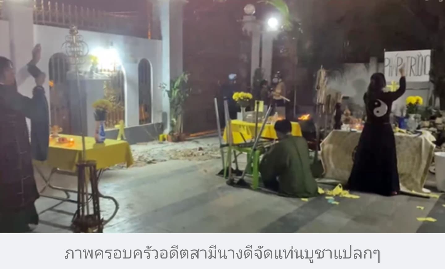 นอกจากนี้ ยังมีภาพถ่ายในสื่อสังคมออนไลน์ที่แสดงให้เห็นว่าครอบครัวอดีตสามีของนางสาว ท. ตั้งแท่นบูชาแปลกๆ ขึ้น สถานที่บูชาดังกล่าวอยู่ในที่ดินและบ้านพักของครอบครัวอดีตสามีในเทียนเหงียบ