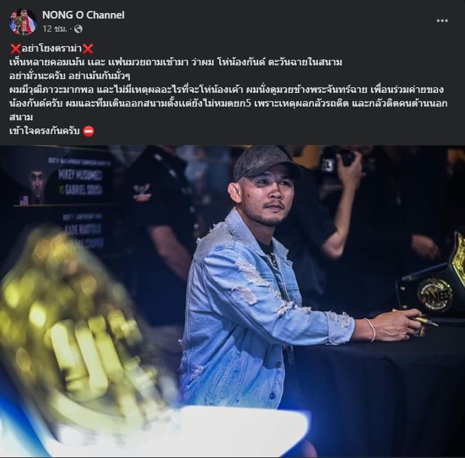 “อย่าโยงดราม่า เห็นหลายคอมเม้น เเละ เเฟนมวยถามเข้ามา ว่าผม โห่น้องกันต์ ตะวันฉายในสนาม อย่ามั่วนะครับ อย่าเม้นกันมั่วๆ”