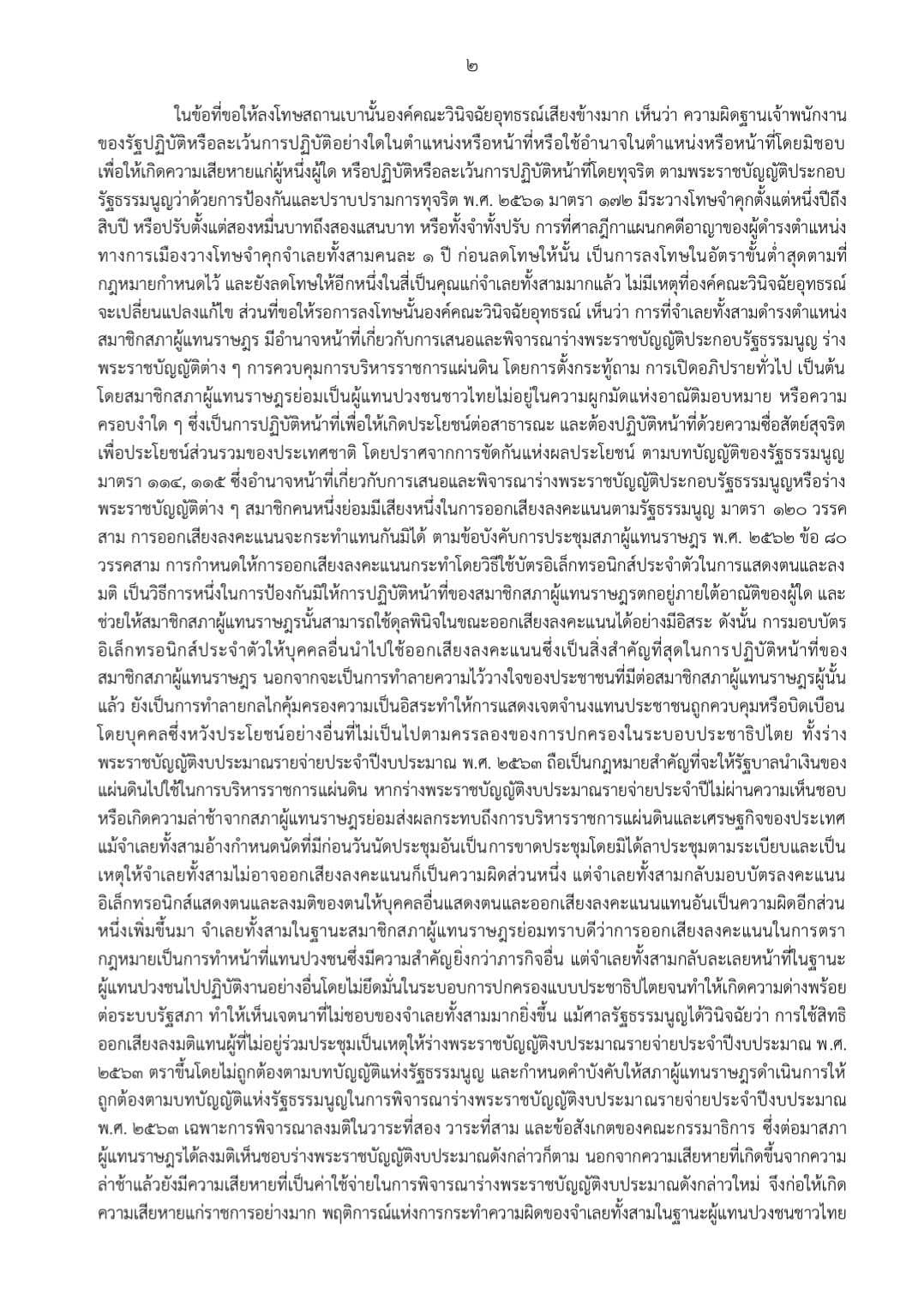 พฤติการณ์แห่งการกระทำความผิดของจำเลยทั้งสามในฐานะผู้แทนปวงชนชาวไทย เป็นการกระทำที่ไม่ชื่อสัตย์ต่อหน้าที่ทำให้ประโยชน์ส่วนรวมได้รับความเสียหาย ไม่ เป็นการปฏิบัติตามหน้าที่และคำปฏิญาณที่ให้ไว้ และไม่เคารพยำเกรงต่อกฎหมาย ถือเป็นเรื่องร้ายแรงกระทบต่อการปกครองในระบอบประชาธิปไตยการไม่รอการลงโทษจำคุกให้แก่จำเลยทั้งสามก็เพื่อให้จำเลยทั้งสามหลาบจำ เป็นการป้องปรามไม่ให้ผู้อื่นเอาเป็น เยี่ยงอย่างกระทำความผิดเช่นนี้อีก