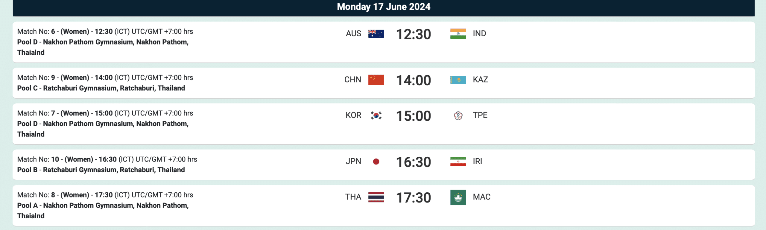 กลุ่มดี : เกาหลีใต้ ไทเป อินเดีย ออสเตรเลีย
