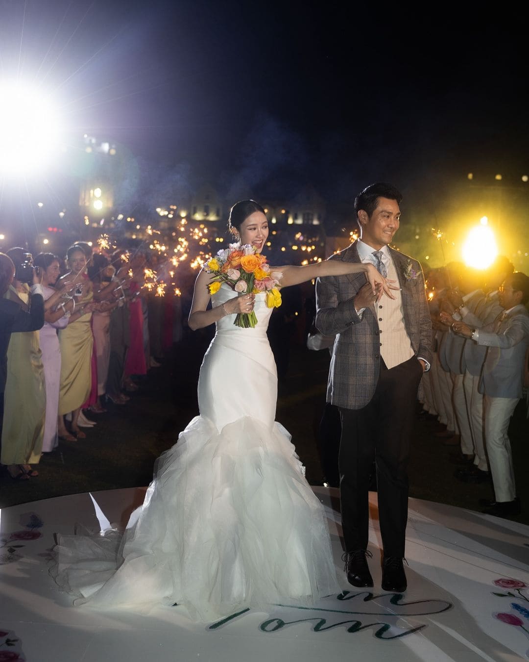 งานแต่งงานจัดขึ้นอย่างอบอุ่น มีครอบครัว ญาติ เพื่อนสนิทในและนอกวงการ รวมถึงผู้ใหญ่ในวงการบันเทิงมาร่วมแสดงความยินดีกันอย่างคับคั่ง บรรยากาศเต็มไปด้วยความรักและความสุขของคู่บ่าวสาวป้ายแดง