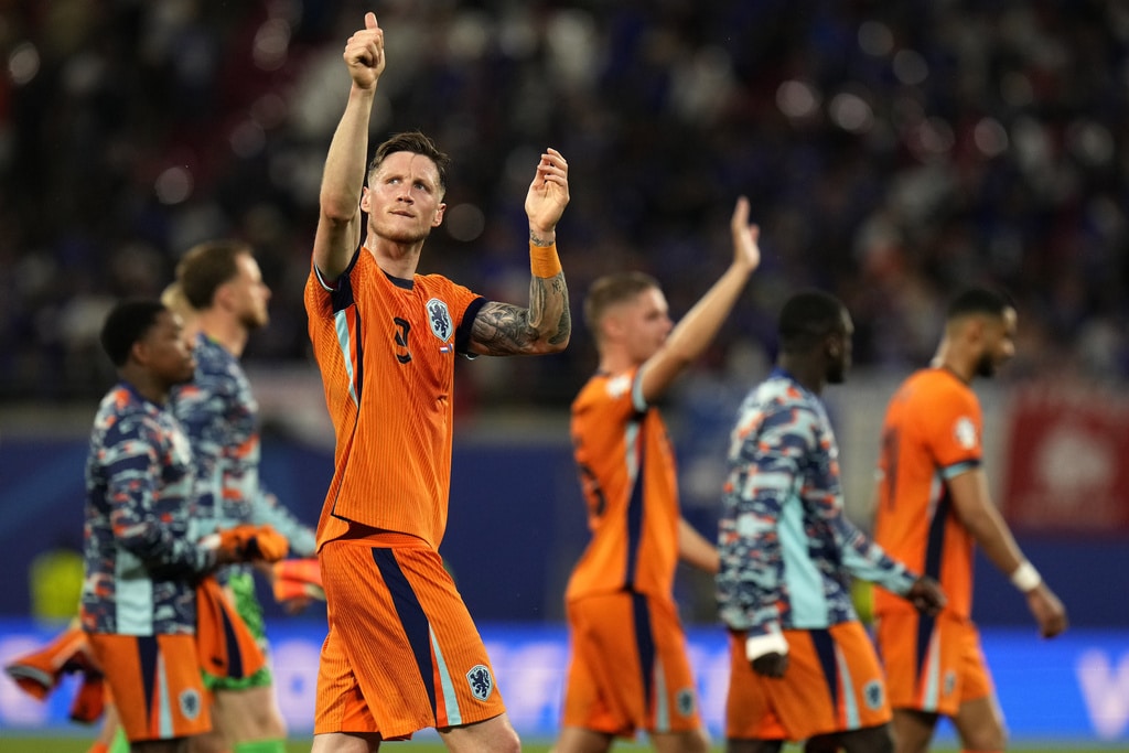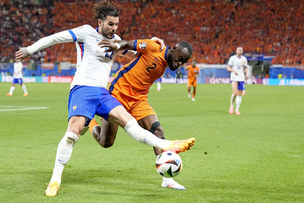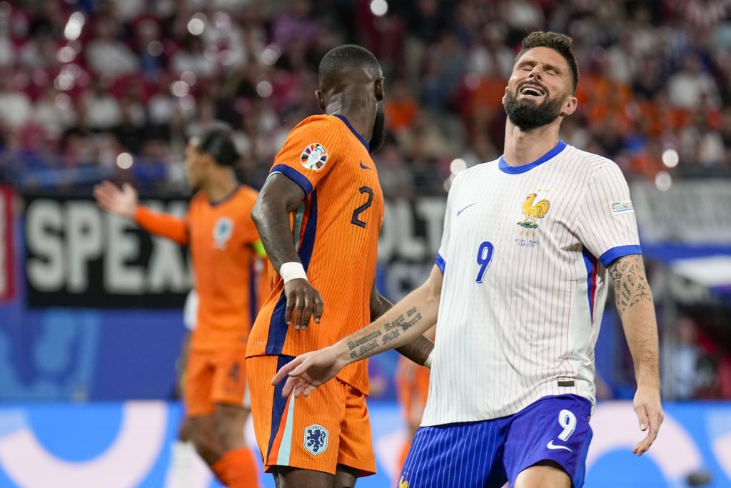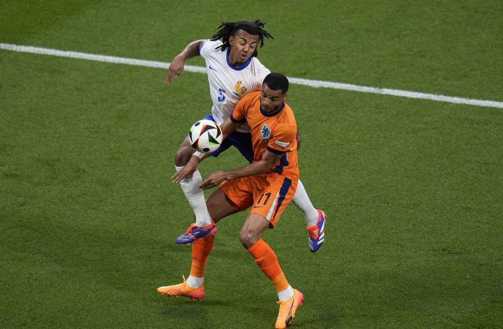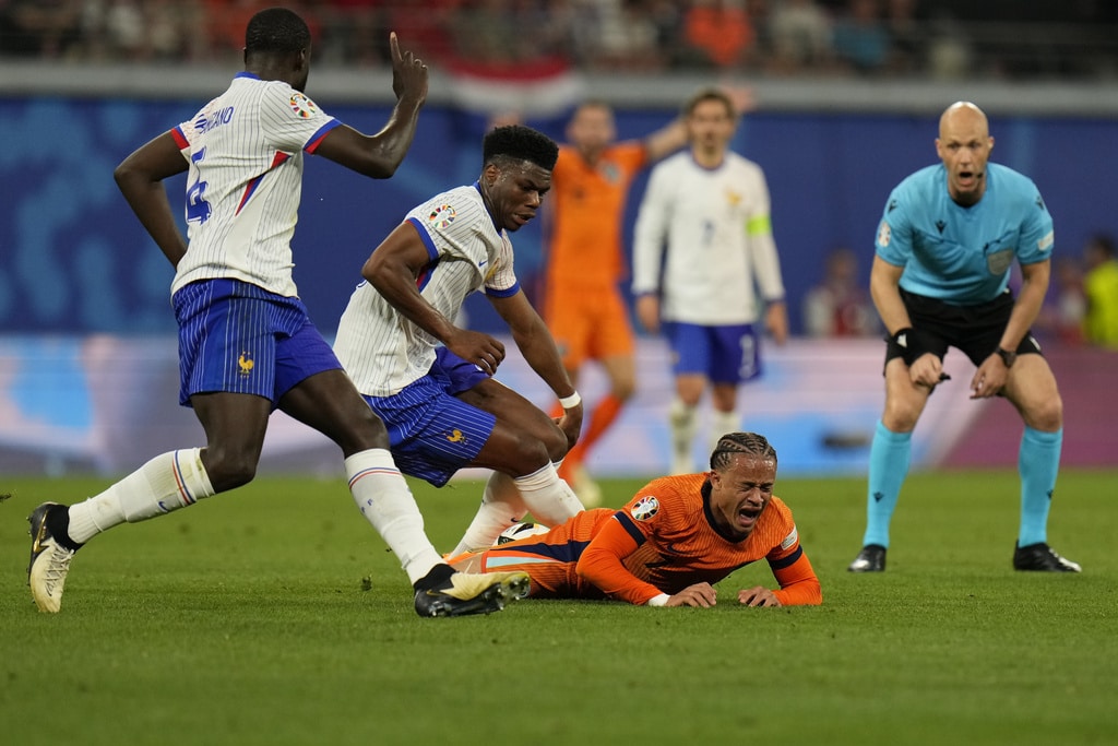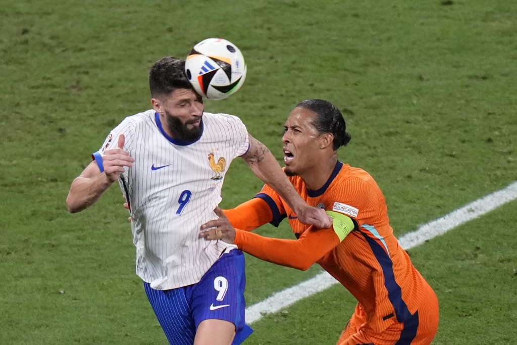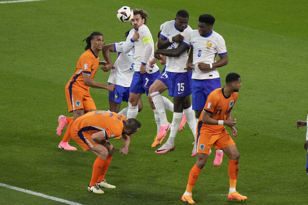 Jules Kounde of France, background, and Cody Gakpo of the Netherlands fight for the ball during a Group D match between the Netherlands and France at the Euro 2024 soccer tournament in Leipzig, Germany, Friday, June 21, 2024. (AP Photo/Sergei Grits)Xavi Simons of the Netherlands, front, is challenged by Aurelien Tchouameni of France, center, during the Group D match between the Netherlands and France at the Euro 2024 soccer tournament in Leipzig, Germany, Friday, June 21, 2024. (AP Photo/Hassan Ammar)France head coach Didier Deschamps, left, and Netherlands’ head coach Ronald Koeman chat after the Group D match between the Netherlands and France at the Euro 2024 soccer tournament in Leipzig, Germany, Friday, June 21, 2024. The match ended in a 0-0 draw. (AP Photo/Hassan Ammar)Antoine Griezmann of France, left, tussles for the ball with Jerdy Schouten of the Netherlands during a Group D match between the Netherlands and France at the Euro 2024 soccer tournament in Leipzig, Germany, Friday, June 21, 2024. (AP Photo/Mathias Schrader)Antoine Griezmann of France, left, and Jules Kounde of France walk on the pitch at the end of a Group D match between the Netherlands and France at the Euro 2024 soccer tournament in Leipzig, Germany, Friday, June 21, 2024. (AP Photo/Ariel Schalit)Lutsharel Geertruida of the Netherlands, right, duels for the ball with Theo Hernandez of France during a Group D match between the Netherlands and France at the Euro 2024 soccer tournament in Leipzig, Germany, Friday, June 21, 2024. (AP Photo/Ariel Schalit)Virgil van Dijk of the Netherlands, right, holds Olivier Giroud of France during a Group D match between the Netherlands and France at the Euro 2024 soccer tournament in Leipzig, Germany, Friday, June 21, 2024. (AP Photo/Sergei Grits)Olivier Giroud of France reacts after missing a chance to score during a Group D match between the Netherlands and France at the Euro 2024 soccer tournament in Leipzig, Germany, Friday, June 21, 2024. (AP Photo/Ariel Schalit)French players jump to stop a free kick during a Group D match between the Netherlands and France at the Euro 2024 soccer tournament in Leipzig, Germany, Friday, June 21, 2024. (AP Photo/Sergei Grits)Memphis Depay of the Netherlands, front, tussles for the ball with Jules Kounde of France during a Group D match between the Netherlands and France at the Euro 2024 soccer tournament in Leipzig, Germany, Friday, June 21, 2024. (AP Photo/Mathias Schrader)