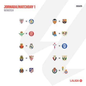 เมื่อวันอังคารที่ 18 มิถุนายน ที่ผ่านมา ลา ลีกา สเปน ได้ประกาศโปรแกรมการแข่งขันนัดเปิดฤดูกาล 2024/25 ออกมาแล้ว โดยมีคู่น่าสนใจหลายคู่ โดยแชมป์เก่า เรอัล มาดริด จะประเดิมซีซั่นใหม่ด้วยการออกไปเยือน เรอัล มายอร์ก้า ด้าน บาร์เซโลน่า รองแชมป์เก่า จะออกไปเยือน บาเลนเซีย