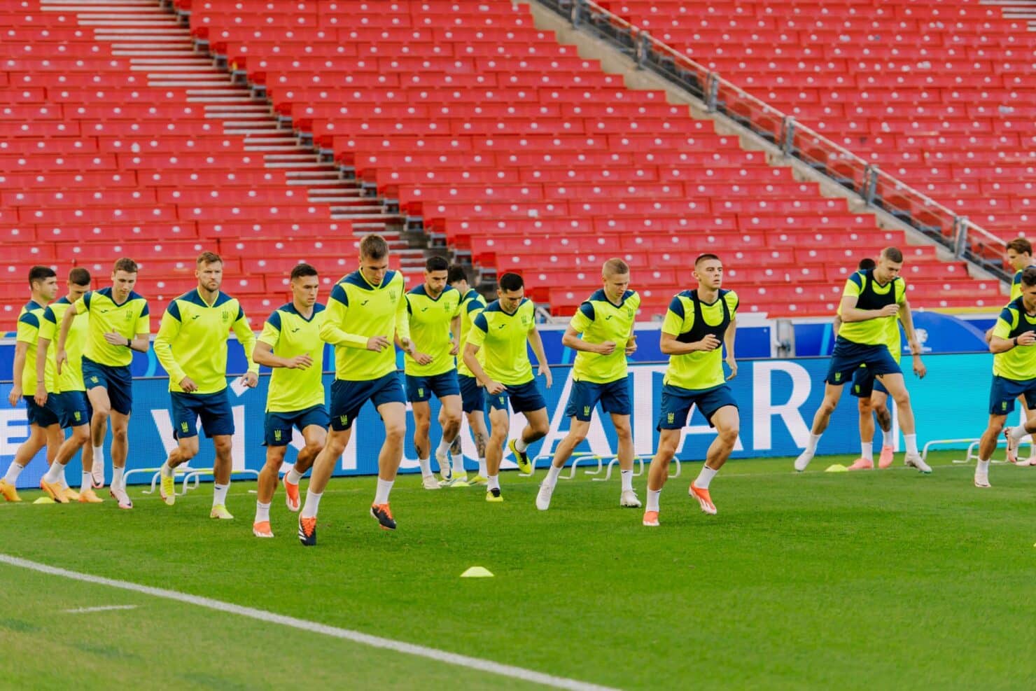ยูเครน (4-3-3) : อนาโตลี ตรูบิน – โอเล็กซานเดอร์ ติมชิค, อิลลีย่า ซาบาร์นี่, มิโกล่า มัตวิเยนโก้, วิตาลี่ มิโคเลนโก้ – จอร์จี้ ซูดาคอฟ, โอเล็กซานเดอร์ ซินเชนโก้, มิโกล่า ชาปาเรนโก้ – อันเดร ยาร์โมเลนโก้ (กัปตันทีม), อาร์เต็ม ดอฟบิค, มิไคโล มูดริค