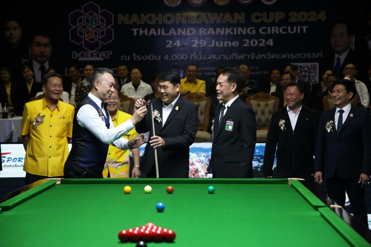 การแข่งขันสนุกเกอร์อาชีพเก็บสะสมคะแนน ไทยแลนด์ แร็งกิ้ง เซอร์กิต 2024 รอบสุดท้าย รายการที่ 5 “ทีเคซี ปากน้ำโพคัพ” ที่ อาคาร 4,000 ที่นั่ง สนามกีฬากลาง จ.นครสวรรค์ เมื่อวันที่ 24 มิ.ย.67 เป็นการแข่งขันวันแรก โดยมี นายทวี เสริมภักดีกุล ผู้ว่าราชาการจ.นครสวรรค์ มาเป็นประธานเปิดการแข่งขัน พร้อมด้วย ส.ส.สัญญา นิลสุพรรณ สมาชิกสภาผู้แทนราษฏร เขต 3 กับ นายภิญญโญ นิดรจน์ นายกสมาคมกีฬาจังหวัดนครสวรรค์, ดร.หิมาลัย ผิวพรรณ ที่ปรึกษารองนายกรัฐมนตรี และรัฐมนตรีว่าการกระทรวงพลังงาน และนายจิตตเกษมณ์ นิโรจน์ธนรัฐ นายกเทศมนตรีนครนครสวรรค์ มาร่วมในพิธีเปิดการแข่งขัน ท่ามกลางแฟนสนุกเกอร์เกือบพันคน