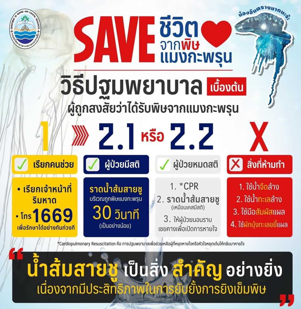 กรมทะเลฯ เตือนภัยนักท่องเที่ยว พบ ‘แมงกะพรุนหัวขวด’ เกลื่อนภูเก็ต บริเวณอ่าวหลา อ่าวทือ เกาะราชาใหญ่ โปรดระมัดระวัง-อย่าสัมผัส มีฤทธิ์แสบร้อน ส่งผลต่อผิวและระบบประสาท อาจร้ายแรงถึงชีวิต