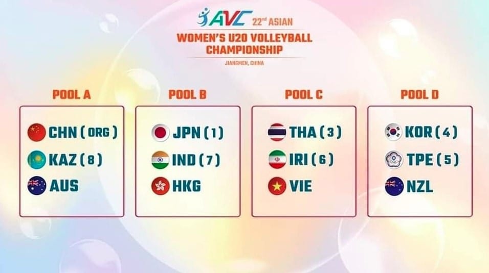 ตารางการแข่ง วอลเลย์บอลหญิง รุ่นอายุต่ำกว่า 20 ปี หรือ U20 ชิงแชมป์เอเชีย 2024 ทีมชาติไทย อยู่ร่วมกลุ่มอิหร่าน และเวียดนาม