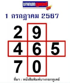 - เลขตาราง หวยบางกอกทูเดย์ : 2 – 9 – 4 – 6 – 5 – 7 – 0