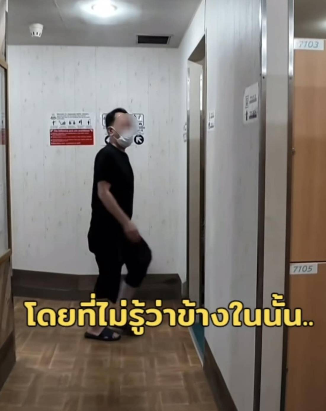 รวมทั้งตนเองถ่ายคลิปอยู่ในห้องเก็บกระเป๋า แต่จู่ ๆ ก็มีผู้ชายคนหนึ่งเดินไม่ใส่เสื้อผ้าเข้ามา ซึ่งไม่ได้ตกใจแต่อย่างไร เพราะเข้าใจว่าเป็นวัฒนธรรมของที่นี่ และยืนยืนว่าตนไม่ได้ถ่ายคลิปโซนบริเวณห้องน้ำอย่างแน่นอน อย่างไรก็ตามฝากเตือนหลาย ๆ คนว่า ถ้าไม่รู้ข้อเท็จจริงไม่ควรพูดคาดเดาเหตุการณ์ไปต่าง ๆ นานา ทั้งนี้ หากตนกระทําผิดพลาดประการใด ขออภัยไว้ ณ ที่นี้ด้วย