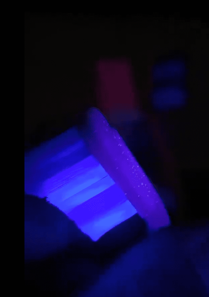 แสงอัลตราไวโอเลตเผยให้เห็นว่าเชื้อโรคจากโถส้วมสามารถฟุ้งกระจายไปติดสิ่งของต่างๆ รอบห้องน้ำ รวมถึงแปรงสีฟัน