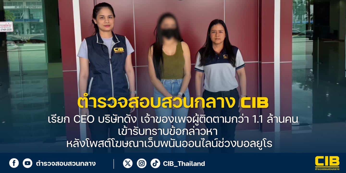 เงินเดือน CEO ไม่พอใช้? ตำรวจจับ เพจดัง 1.1 ล้านฟอล โฆษณาเว็บพนัน บอลยูโร