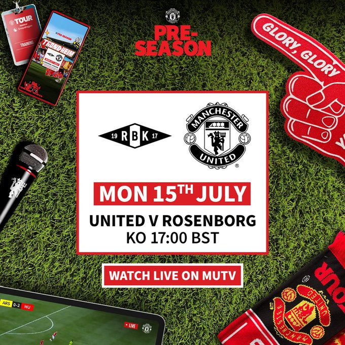 แมนยู ประกาศรายชื่อ 25 นักเตะชุดบินไปอุ่นเครื่องกับ โรเซนบอร์ก วันจันทร์ที่ 15 กรกฎาคม นี้ โดยหนีบนักเตะดาวรุ่งไปเป็นส่วนใหญ่ และไร้ชื่อ เจดอน ซานโช่ ที่เพิ่งกลับมาร่วมทีมชุดใหญ่ หลังเคลียร์ใจกับ เอริค เทน ฮาก เรียบร้อย