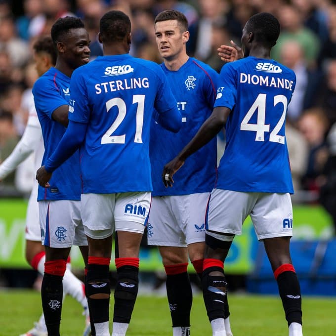 เรนเจอร์ส : แจ็ค บัตแลนด์ (GK), ดูยอน สเตอร์ลิง, คอนเนอร์ โกลด์สัน, เบน เดวิส, เฆฟเต้, โมฮาเหม็ด ดีโยม็องเด, คอนเนอร์ บาร์รอน, คีแรน โดเวลล์, ทอม ลอว์เรนซ์, แร็บบี้ มาทอนโด้, ฮัมซา อิกามาเน่