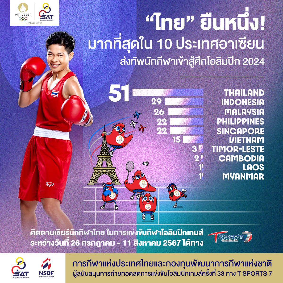 “ไทย” ยืนหนึ่ง! ส่งทัพนักกีฬาเข้าสู้ศึกโอลิมปิก 2024 มากที่สุดใน 10 ประเทศอาเซียน