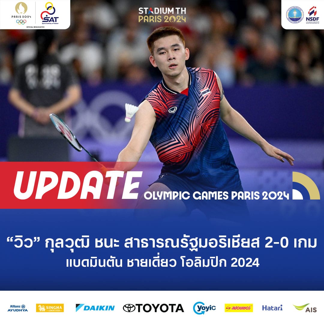 การแข่งขัน แบดมินตัน ศึกโอลิมปิกเกมส์ 2024 เมื่อวันที่ 27 ก.ค. ที่ผ่านมา ในประเภทชายเดี่ยว รอบแบ่งกลุ่ม กลุ่มซี นัดแรก “วิว” กุลวุฒิ วิทิตศานต์ มือ 8 ของโลก และมือวางอันดับ 8 ของรายการ พบ จูเลียน ปอล มือ 109 ของโลกจากสาธารณรัฐมอริเชียส