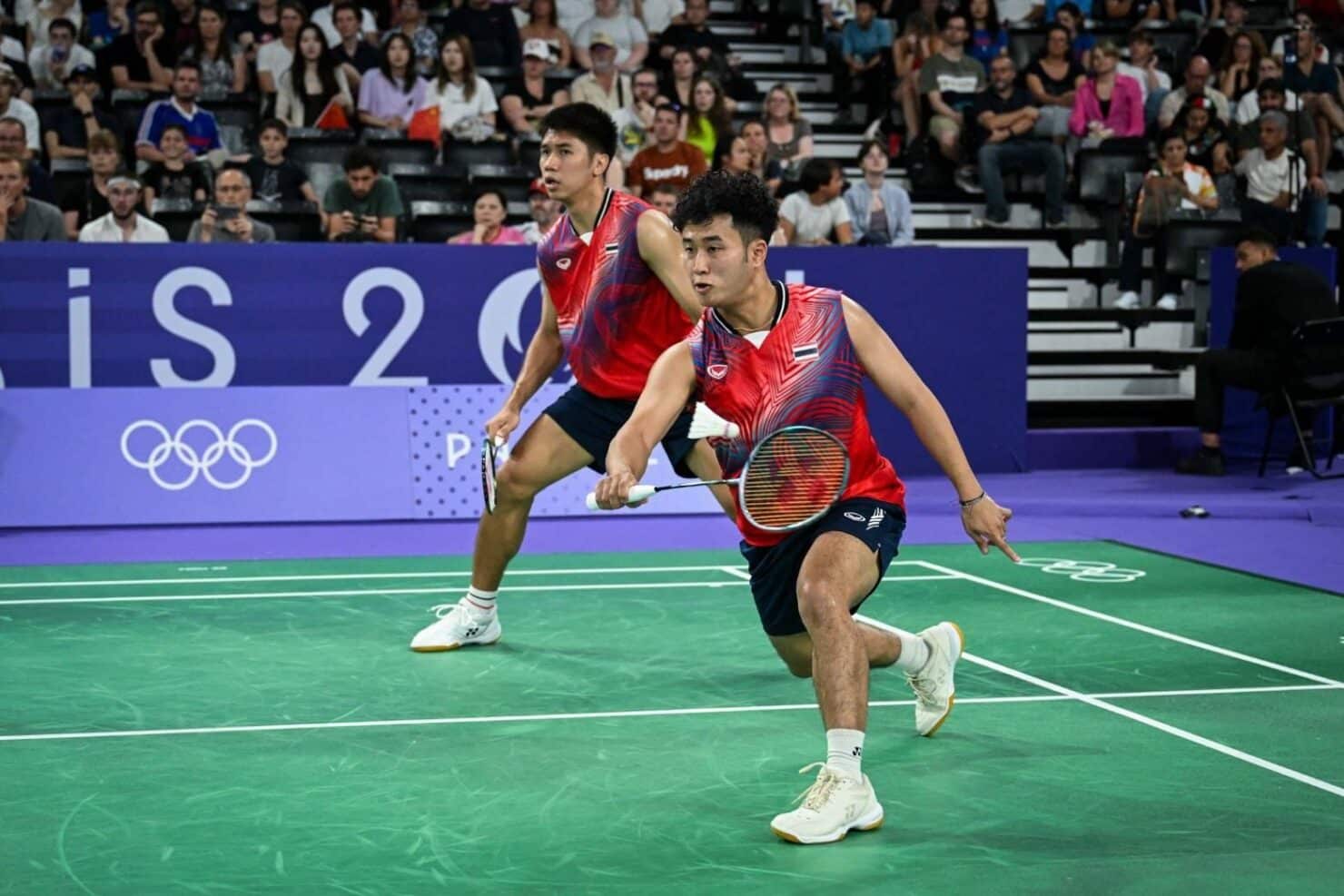 เอ็ม สุภัค และ สกาย กิตตินุพง ตบไม่พลาด เอาชนะคู่แข่งจากสาธารณรัฐเช็ก ในการแข่งขันแบดมินตันประเภทชายคู่ รอบแบ่งกลุ่ม กลุ่มบี ที่ปอร์ เดอ ลา ชาแปลล์ อารีนา กรุงปารีส ประเทศฝรั่งเศส