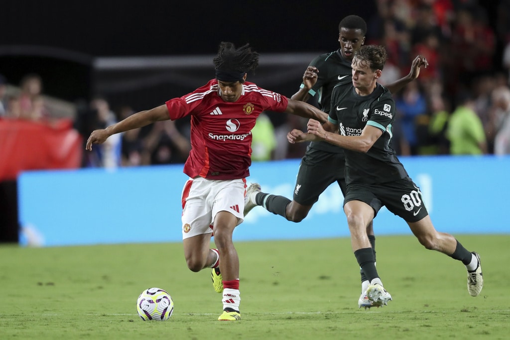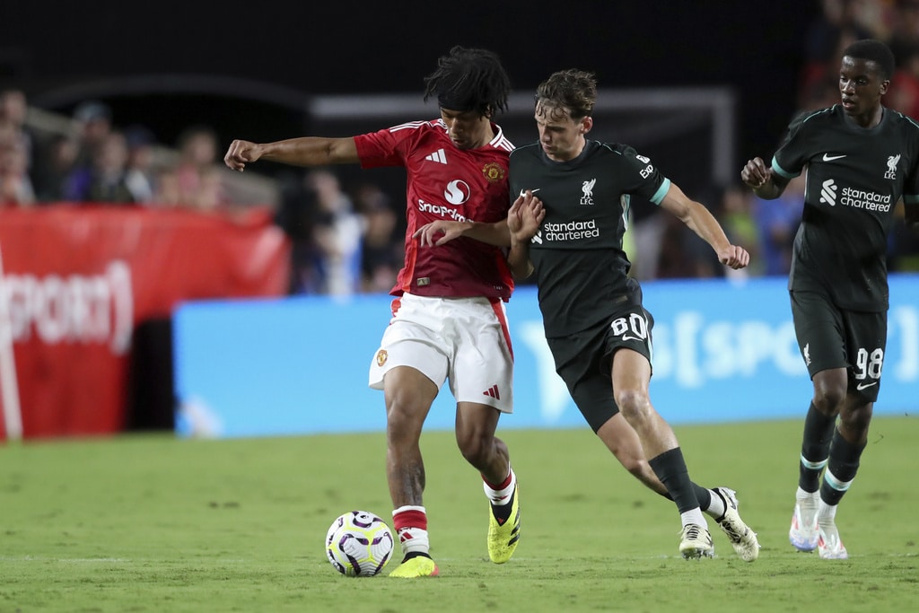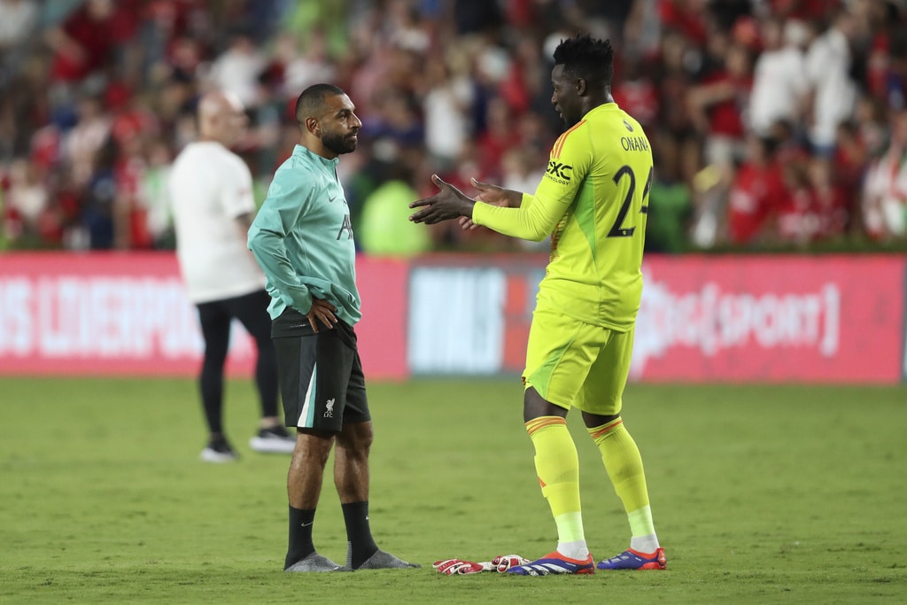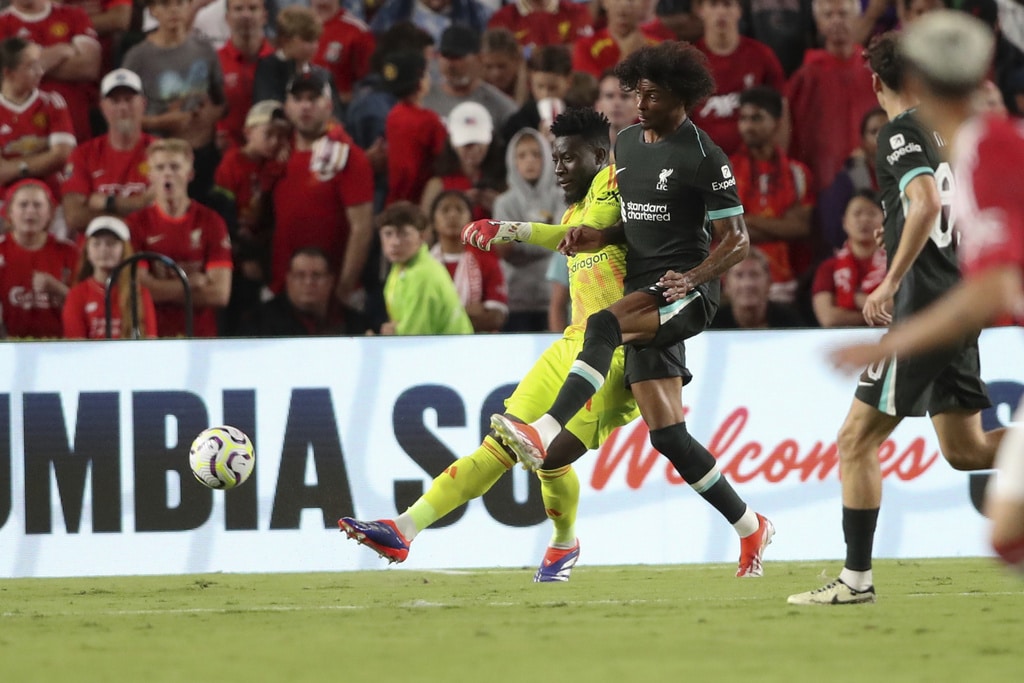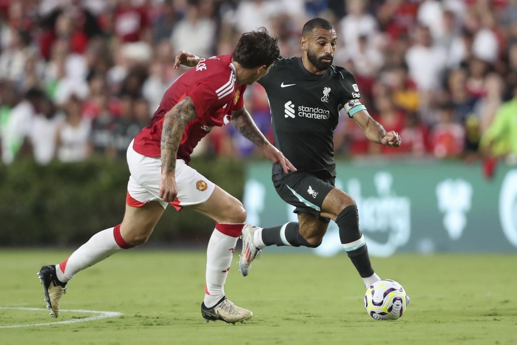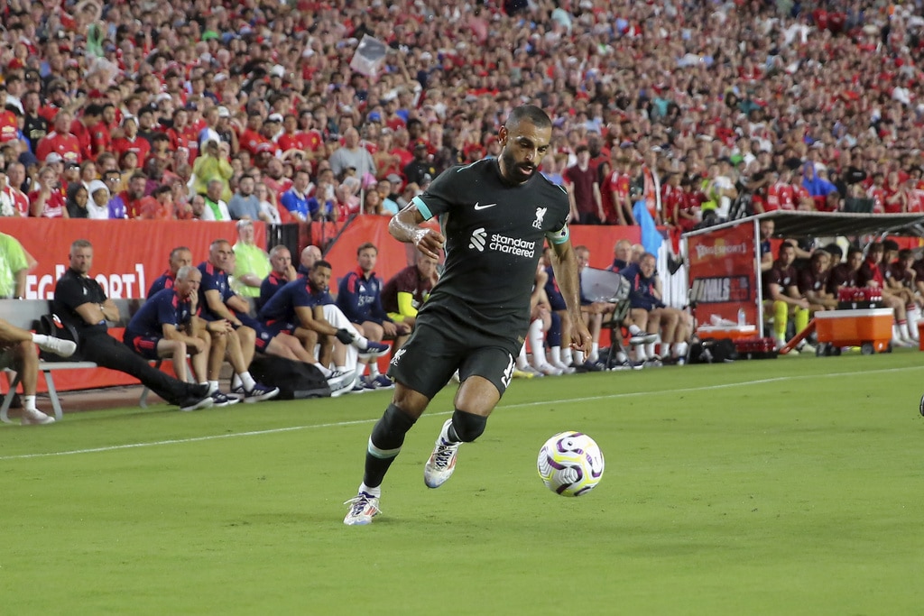 Liverpool forward Mohamed Salah, right, moves past Manchester United defender Victor Lindelöf during the first half of an international friendly soccer match Saturday, Aug. 3, 2024, in Columbia, S.C. (AP Photo/Artie Walker Jr.)Manchester United midfielder Maximillian Oyedele, left, creates space away from Liverpool midfielder Tyler Morton (80) during the second half of an international friendly soccer match, Saturday, Aug. 3, 2024, in Columbia, S.C. (AP Photo/Artie Walker Jr.)Liverpool forward Harvey Blair, center right, challenges Manchester United goalkeeper André Onana, center left, for the ball during the second half of an international friendly soccer match, Saturday, Aug. 3, 2024, in Columbia, S.C. (AP Photo/Artie Walker Jr.)Manchester United midfielder Maximillian Oyedele, left, and Liverpool midfielder Tyler Morton (80) challenge for the ball during the second half of an international friendly soccer match, Saturday, Aug. 3, 2024, in Columbia, S.C. (AP Photo/Artie Walker Jr.)Liverpool forward Mohamed Salah, left, talks with Manchester United goalkeeper André Onana (24) after an international friendly soccer match, Saturday, Aug. 3, 2024, in Columbia, S.C. (AP Photo/Artie Walker Jr.)Manchester United forward Antony dos Santos, left, creates space away from Liverpool defender Luke Chambers, right, during the second half of an international friendly soccer match, Saturday, Aug. 3, 2024, in Columbia, S.C. (AP Photo/Artie Walker Jr.)Liverpool manager Arne Slot urges his team to pressure the ball during the second half of an international friendly soccer match against Manchester United, Saturday, Aug. 3, 2024, in Columbia, S.C. (AP Photo/Artie Walker Jr.)Liverpool manager Arne Slot, left, sits with his coaching staff before an international friendly soccer match against Manchester United, Saturday, Aug. 3, 2024, in Columbia, S.C. (AP Photo/Artie Walker Jr.)Liverpool forward Mohamed Salah (11) finds space to maneuver during the first half of an international friendly soccer match against Manchester United, Saturday, Aug. 3, 2024, in Columbia, S.C. (AP Photo/Artie Walker Jr.)