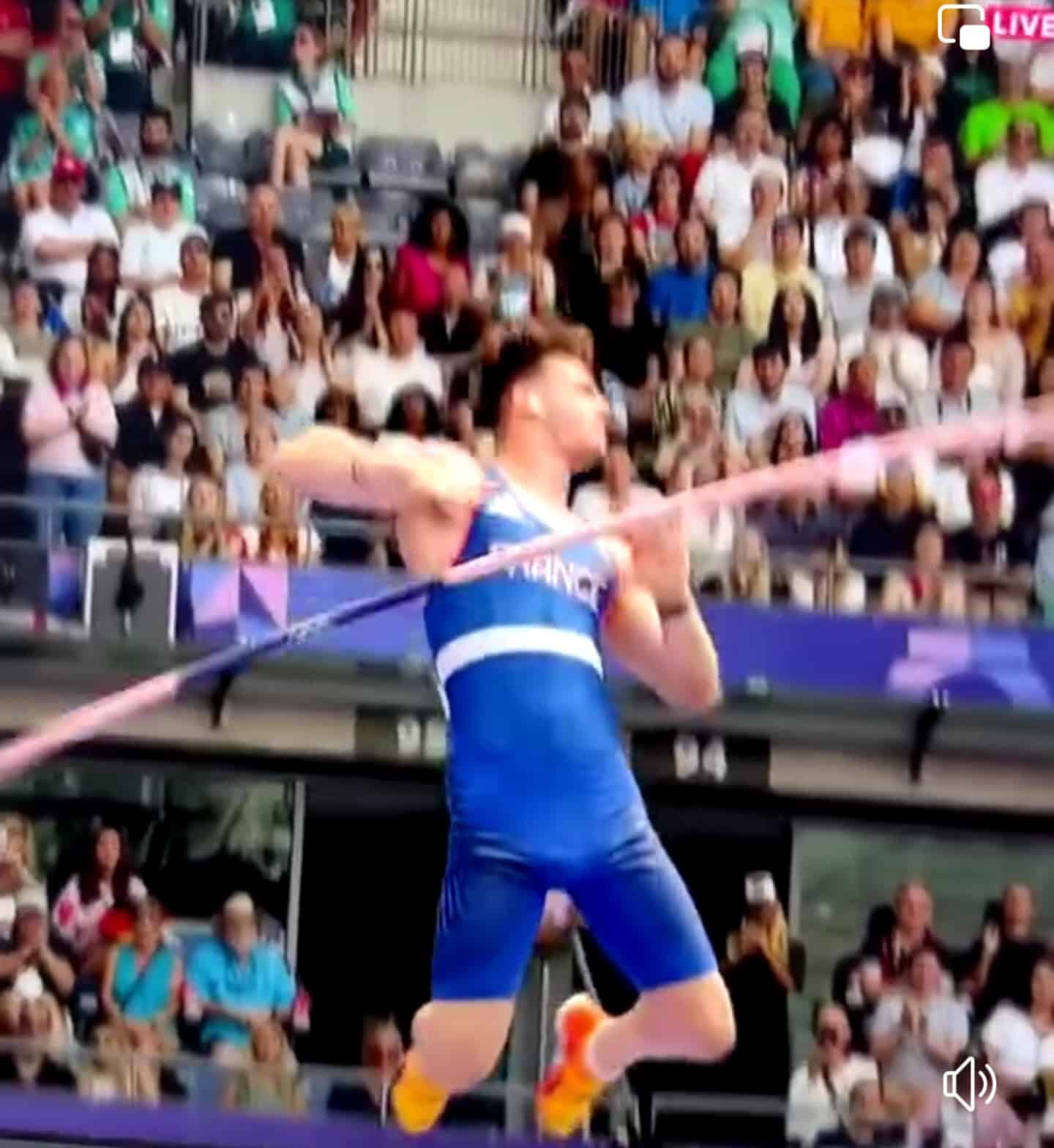 คนดูโอลิมปิกฮือฮา คลิปนักกีฬากระโดดค้ำถ่อชาวฝรั่งเศส พลาดท่าตกรอบ โอลิมปืก 2024 เพราะน้องชายขัดคานหล่น