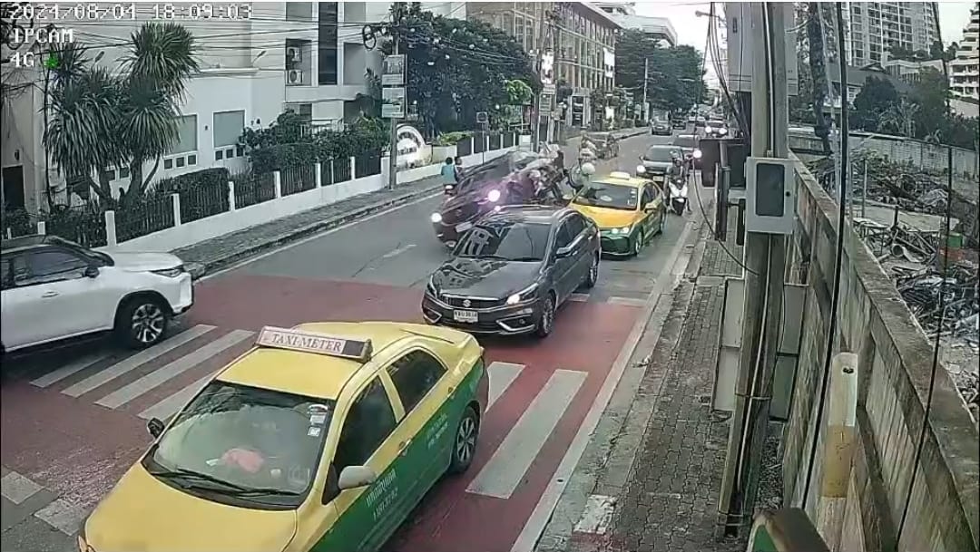 อุบัติเหตุนี้ มีผู้บาดเจ็บ 1 ราย ข้อเท้าขาด เบื้องต้นตำรวจ สน.ทองหล่อ ได้ภาพจากกล้องวงจรปิดบริเวณที่เกิดเหตุ บันทึกภาพเหตุการณ์ที่เกิดขึ้นได้ทั้งหมด โดยรถยนต์คันสีแดงได้ขับแซงขวาขึ้นมาอย่างเร็ว และชนกับจักรยานยนต์ จนคนขี่ซึ่งเป็นไรเดอร์กระเด็นและได้รับบาดเจ็บสาหัส