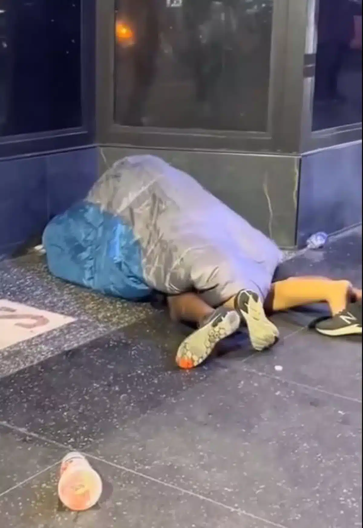 เหตุการณ์สุดพิลึกนี้ถูกแชร์บน Twitter/X จนกลายเป็นไวรัล คลิปวิดีโอความยาว 15 วินาทีเผยให้เห็นถุงนอนสีเงินและน้ำเงินที่มีขาโผล่ออกมาสองคู่ ขยับขึ้นลงอย่างต่อเนื่องเป็นจังหวะ